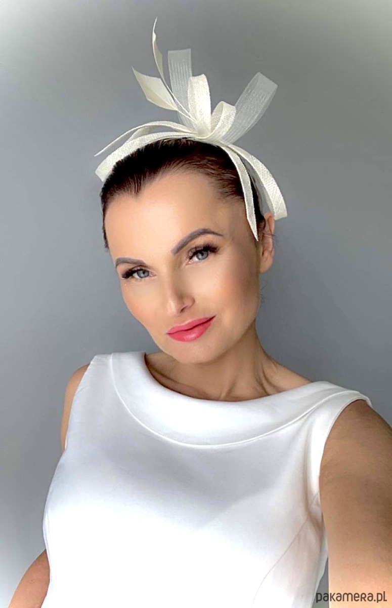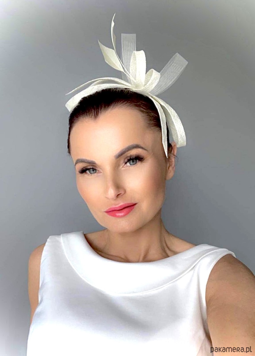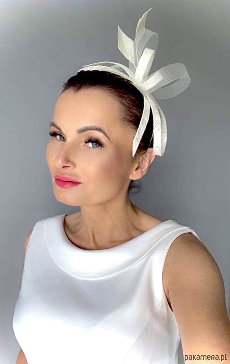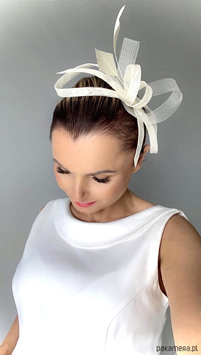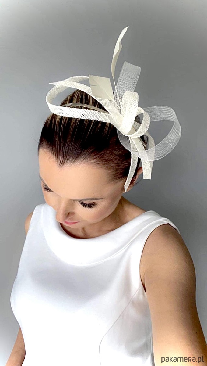Fascynator/ozdoba na głowę , piękny dodatek do sukni lub klasycznego outfit-u ślubnego ,a może do inej kreacji , w kolorze jasnego ecru .
