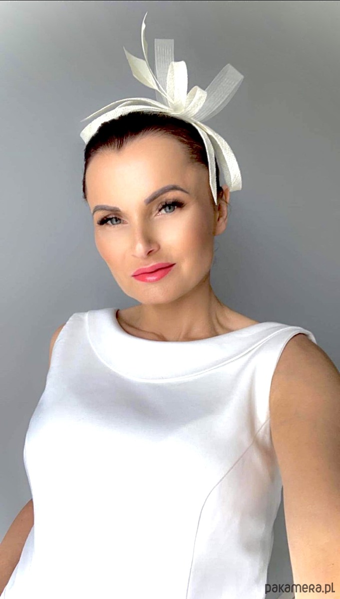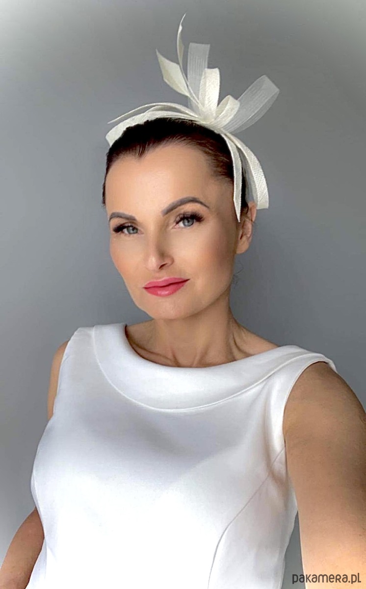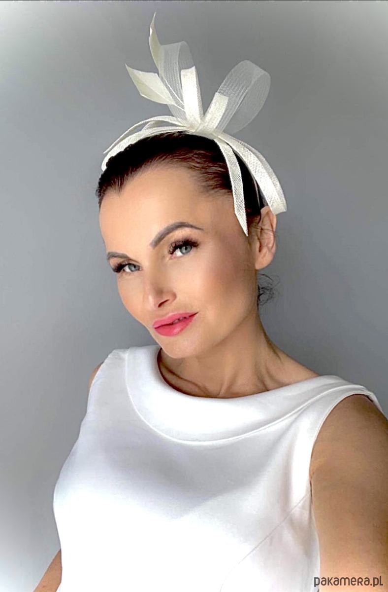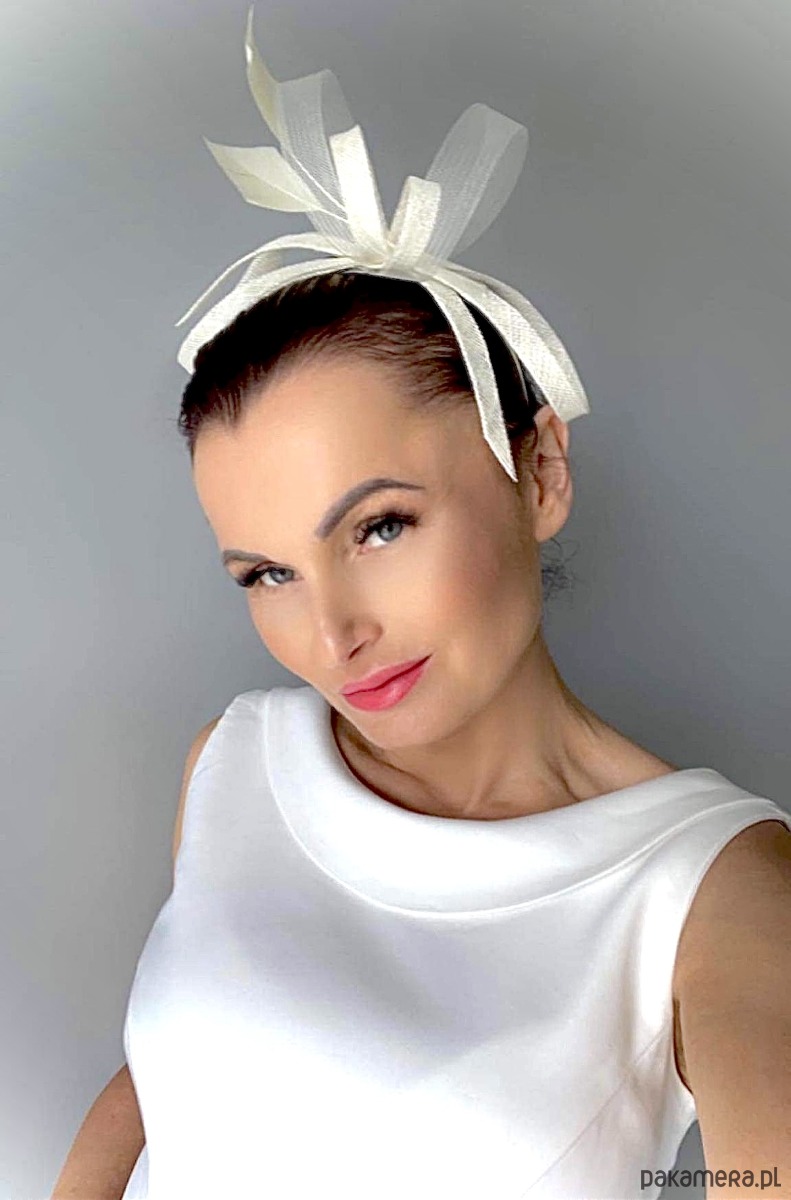 Fascynator/ozdoba na głowę , piękny dodatek do sukni lub klasycznego outfit-u ślubnego ,a może do inej kreacji , w kolorze jasnego ecru .