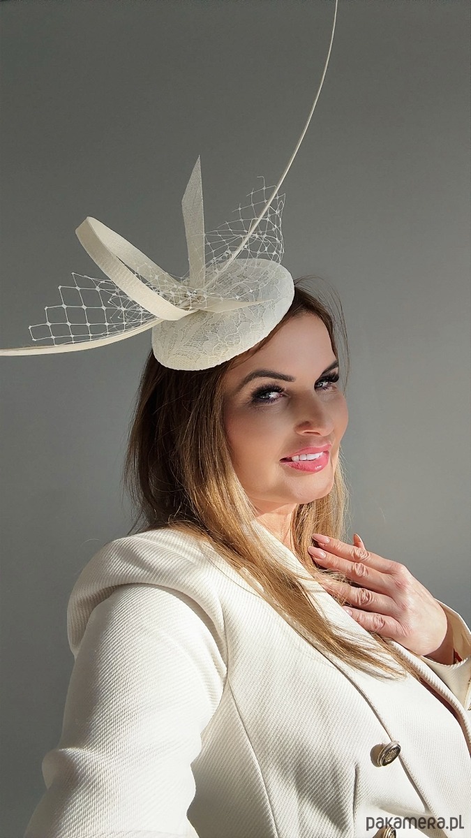 Fascynator /toczek W KOLORZE ECRU piękny dodatek do kreacji ślubnej , doskonały na różne okazje , a może pomysł na nietuzinkowy prezent .