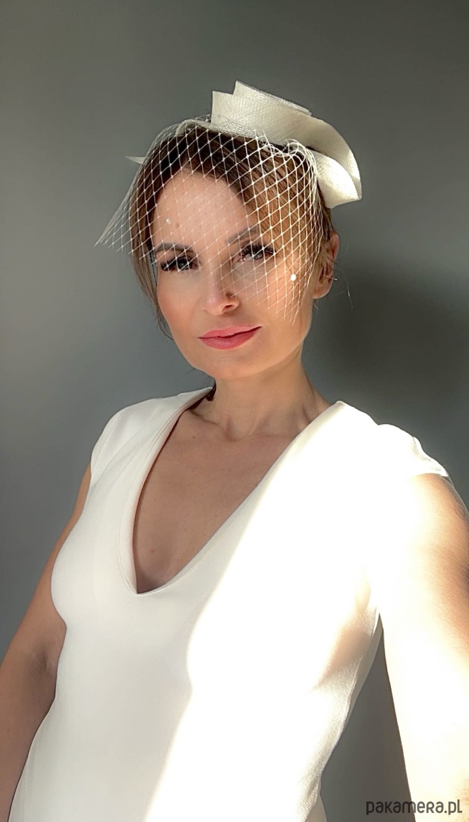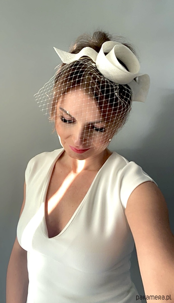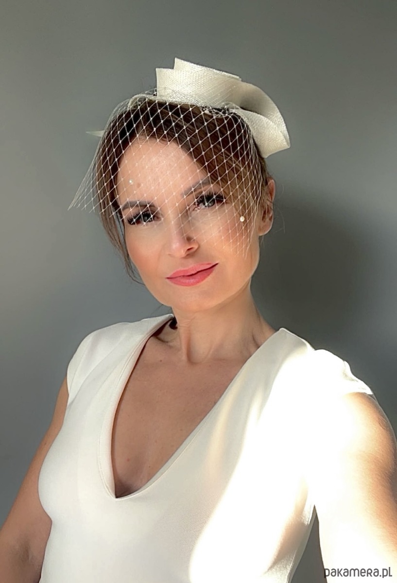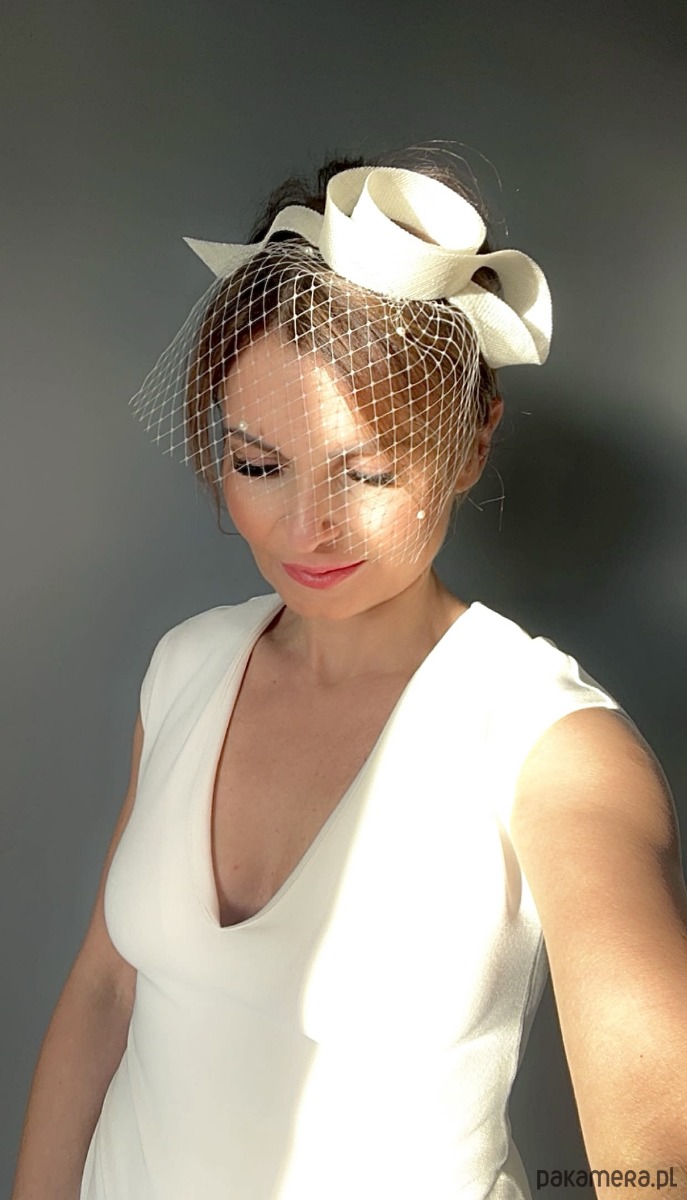 Fascynator /ozdoba na głowę w kolorze ECRU .Piękny i elegancki dodatek do kreacji , doskonały na różne okazje. Wykonany profesjonalnie , ze szczególną starannością i dbałością o każdy szczegół , z brytyjskiej taśmy sinamay , zamocowany na złotej ,czarnej lub srebrnej opasce - do wyboru .Fascynator można nosić na różne sposoby , a to dzięki mocowaniu do opaski , które jest wykonane w sposób , który umożliwia przesuwanie ozdoby do różnych pozycji na głowie , w zależności od potrzeby czy upodobania.