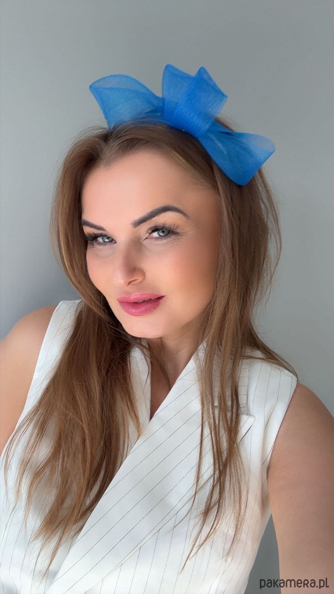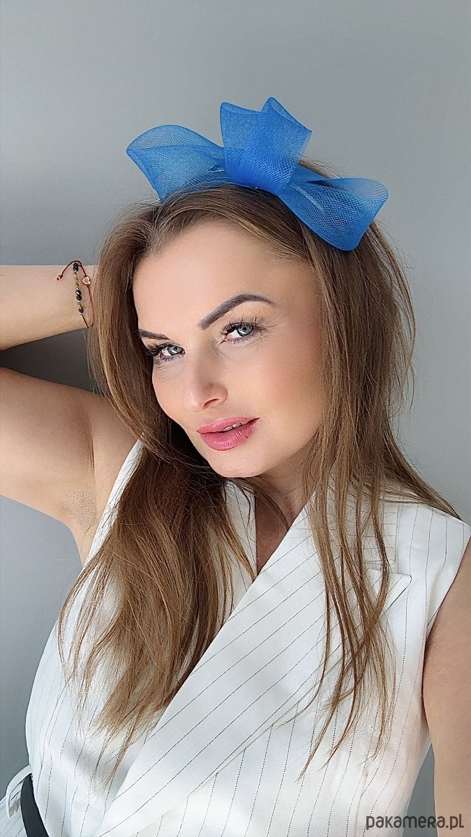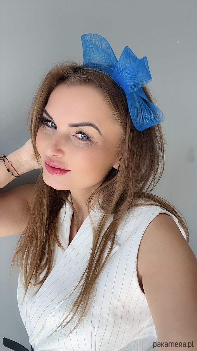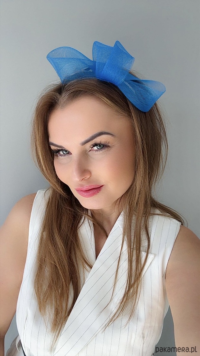 Fascynator /ozdoba na głowę w CHABROWYM kolorze Piękny i elegancki dodatek do kreacji , doskonały na różne okazje. Wykonany profesjonalnie , ze szczególną starannością i dbałością o każdy szczegół , z taśmy krynolinowej oraz zamocowany na złotej ,czarnej lub srebrnej opasce - do wyboru .Fascynator można nosić na różne sposoby , a to dzięki mocowaniu do opaski , które jest wykonane w sposób , który umożliwia przesuwanie ozdoby do różnych pozycji na głowie , w zależności od potrzeby czy upodobania.