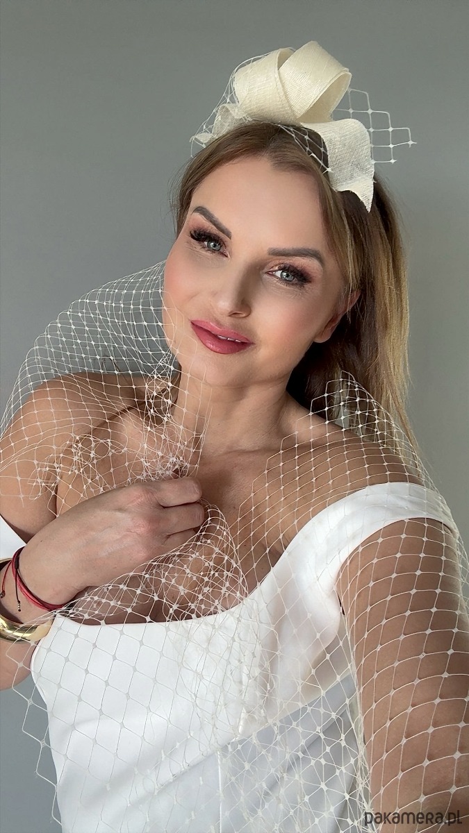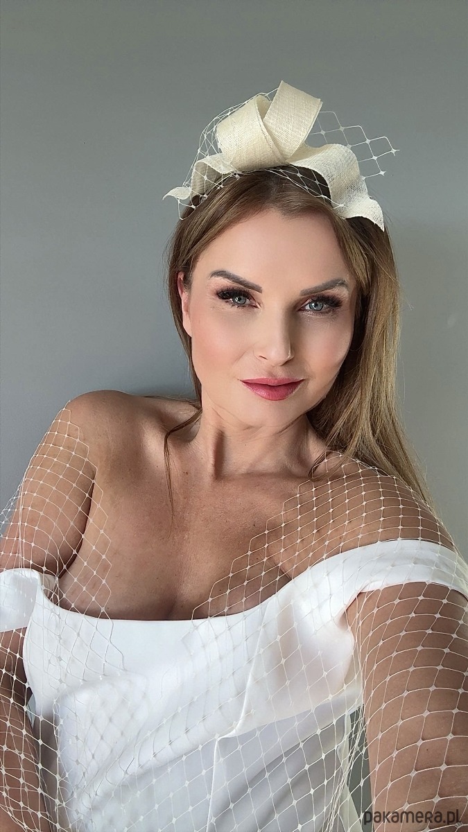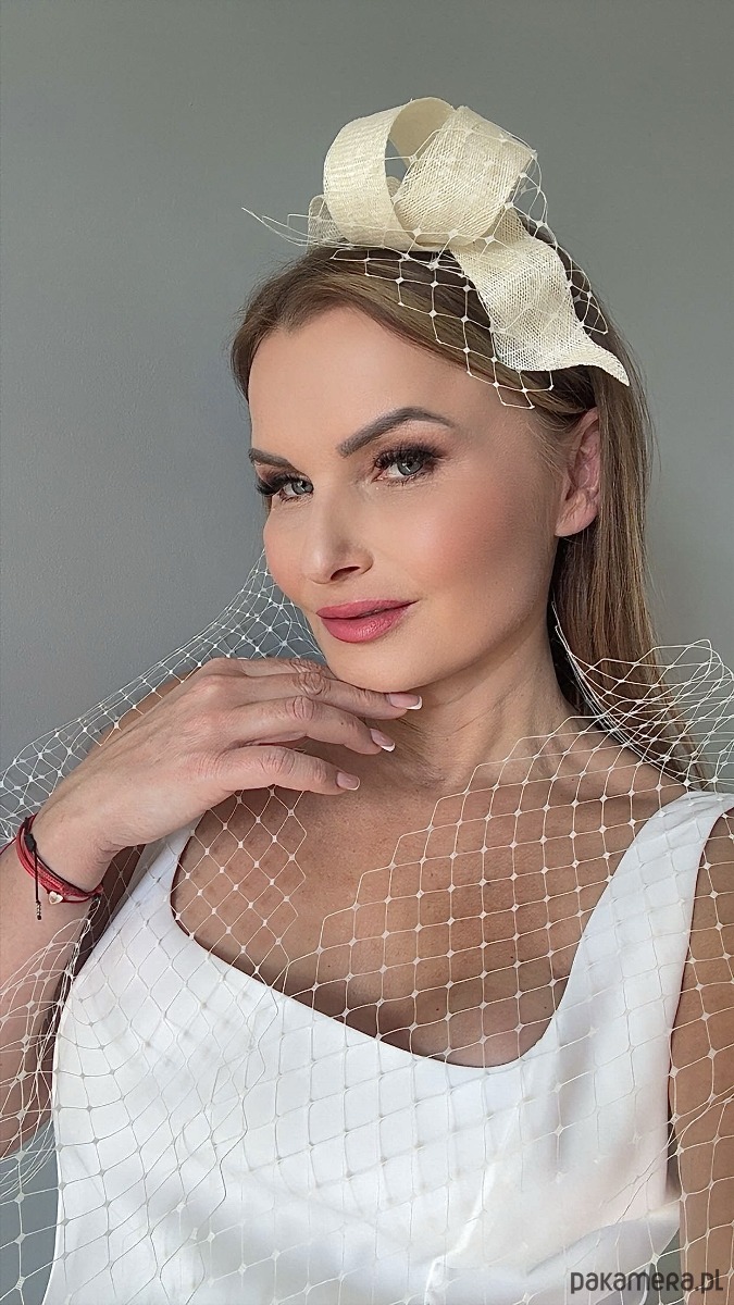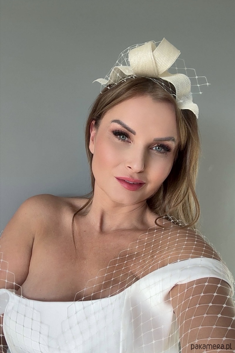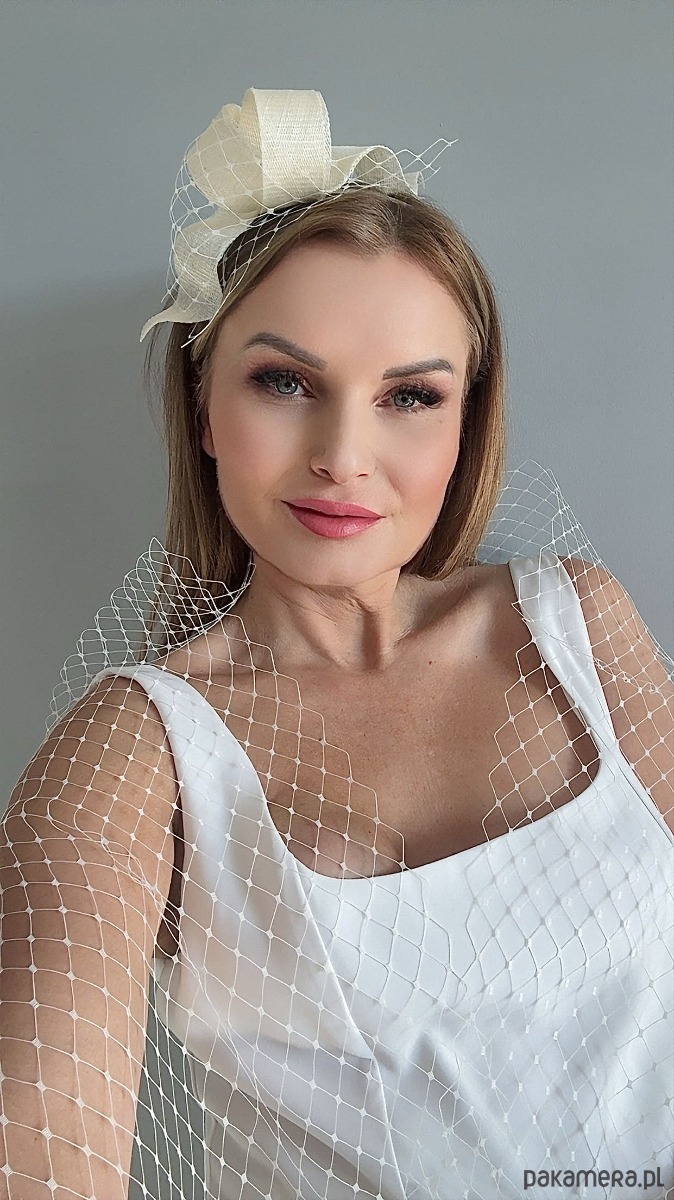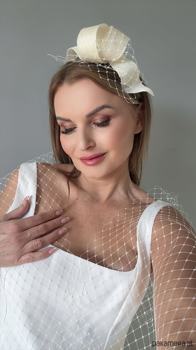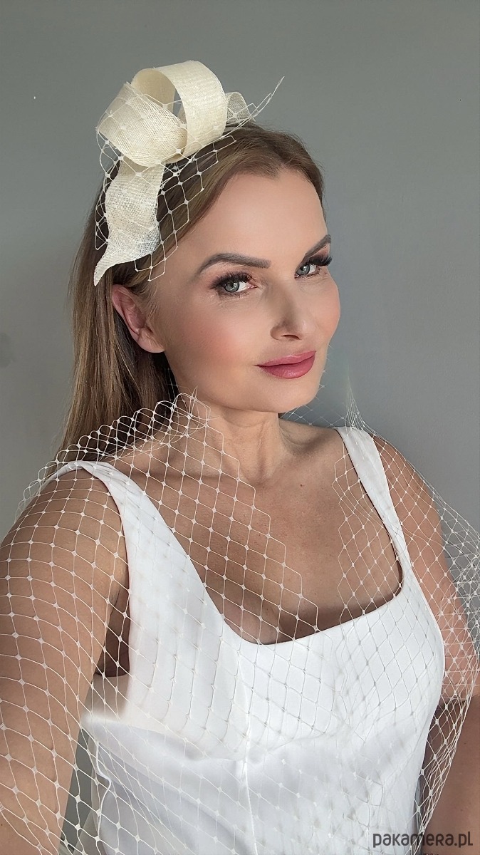 Fascynator ślubny NOEMI ECRU z WOALKĄ inne kolory