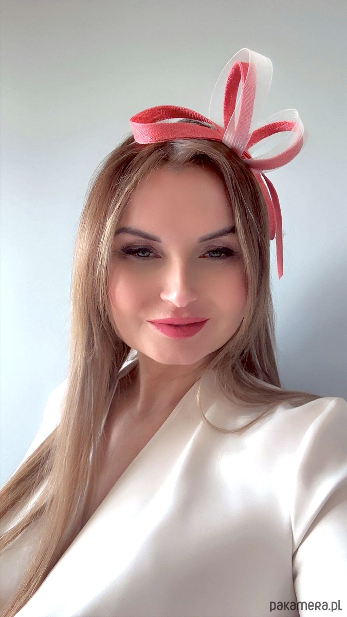Wykonany profesjonalnie , ze szczególną starannością i dbałością o każdy szczegół , z brytyjskiej taśmy sinamay oraz zamocowany na złotej lub srebrnej opasce - do wyboru .Fascynator można nosić na różne sposoby , a to dzięki mocowaniu do opaski , które jest wykonane w sposób , który umożliwia przesuwanie ozdoby do różnych pozycji na głowie , w zależności od potrzeby czy upodobania.