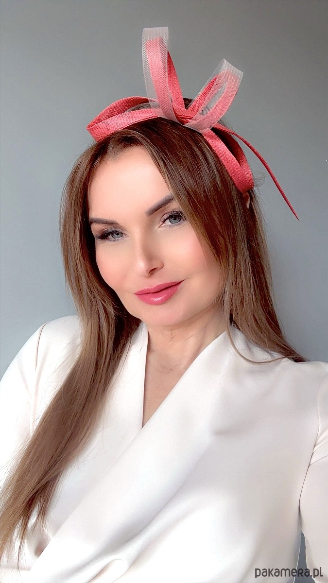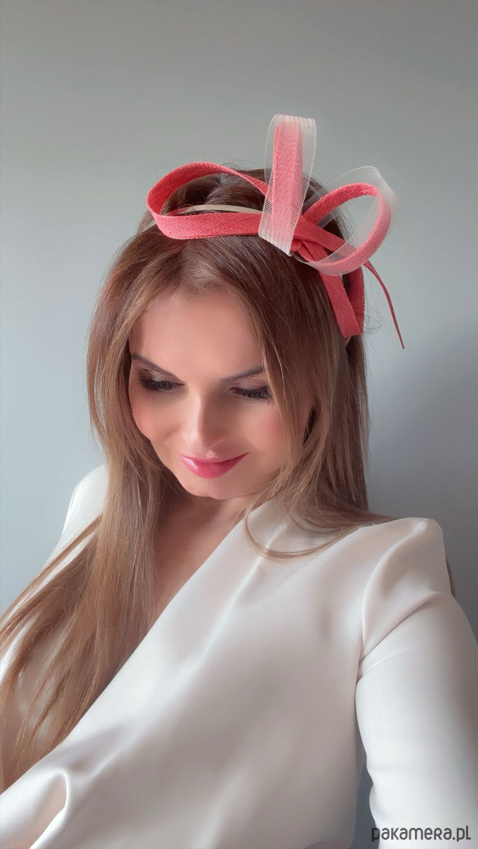 Fascynator/ozdoba na głowę , piękny dodatek do sukni lub klasycznego outfit-u ślubnego ,a może do innej kreacji , w pięknym koralowym kolorze