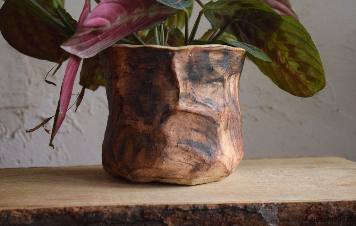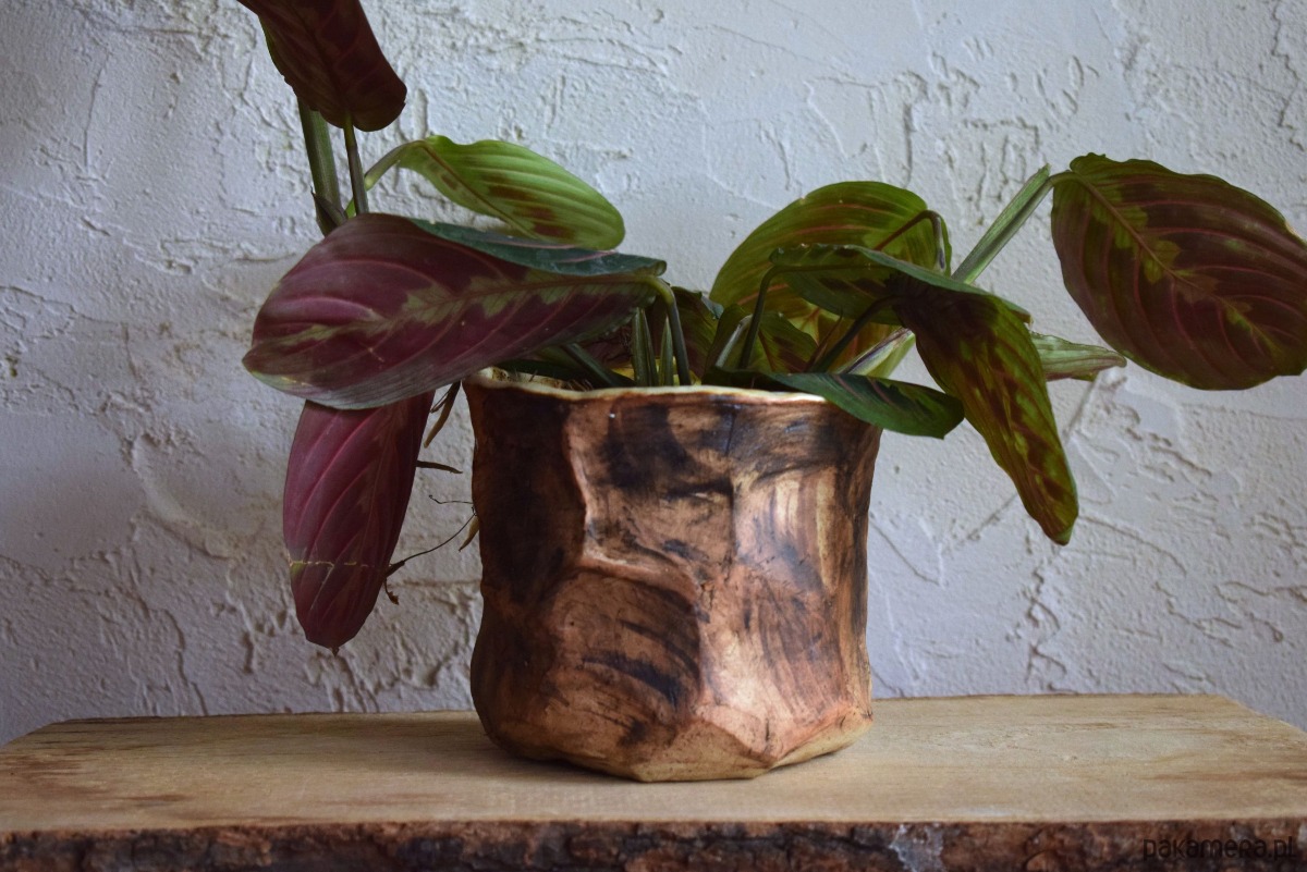 Ta osłonka jest ceramiczna, a przypomina korę drzewa. Tym samym wprowdzi do domu trochę więcej natury i ukojenia. Przyniesie spokój i wydobędzie jeszcze większe piękno zamieszkującej ją rośliny.