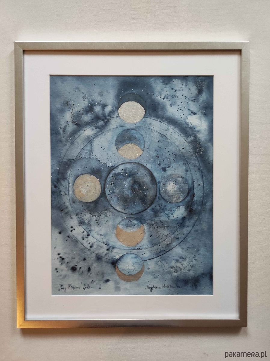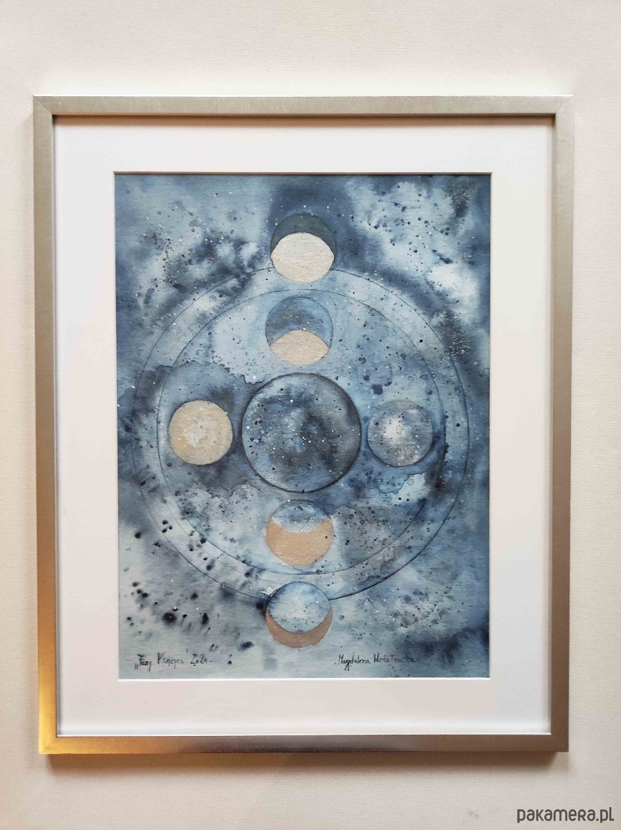 Fazy Księżyca Oryginał Silver Moon Akwarela