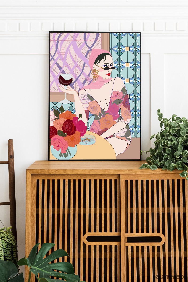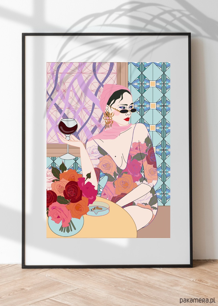 "Femme Fatal" Ilustracja kobiety, plakat modowy, wektorowy.
