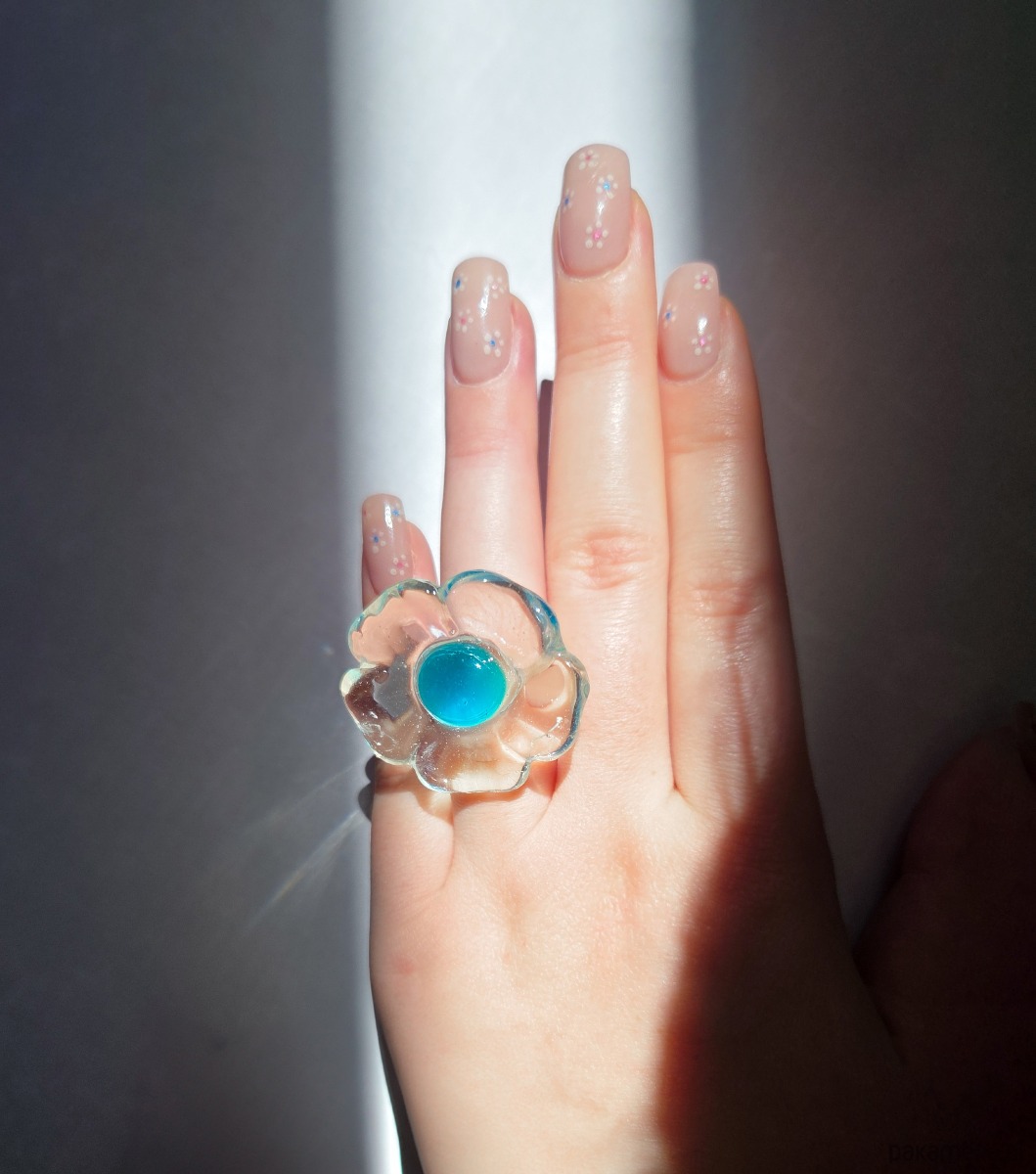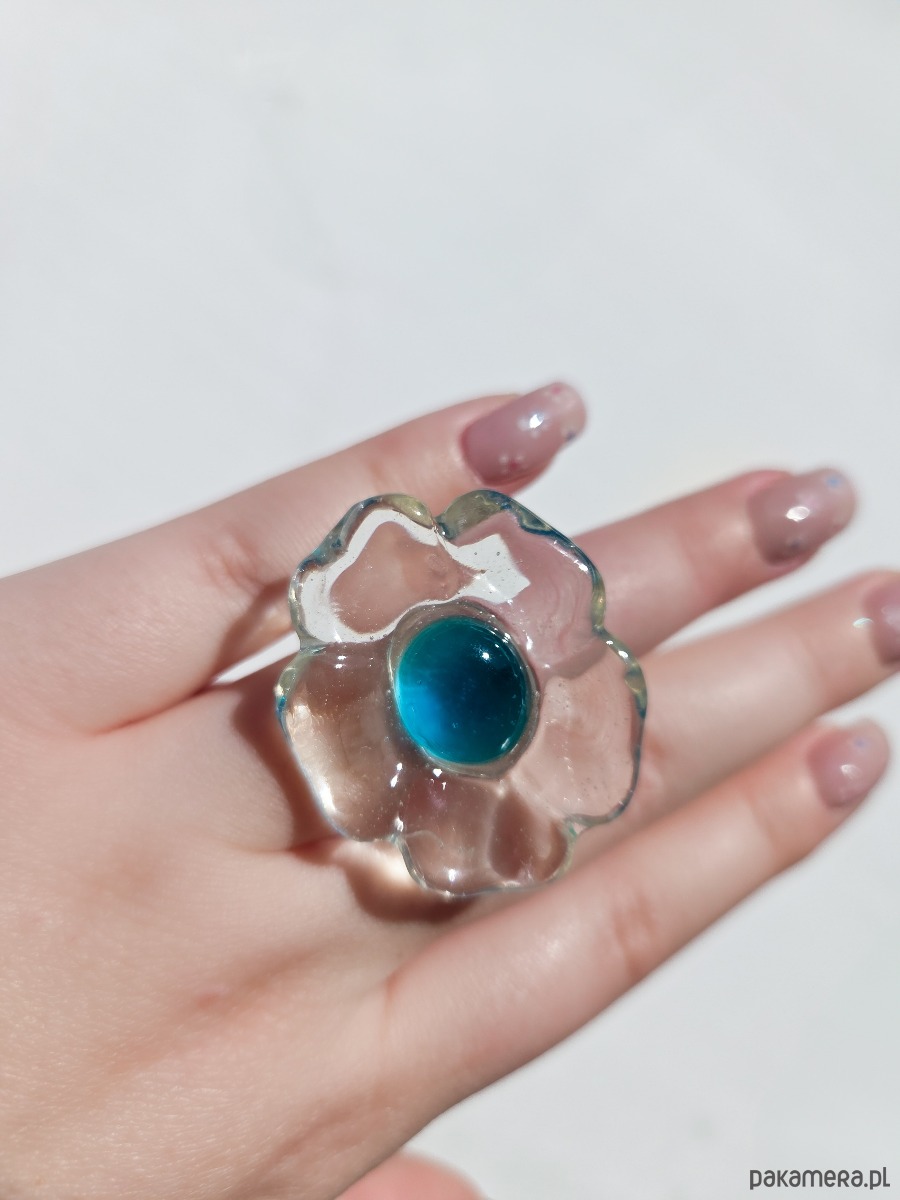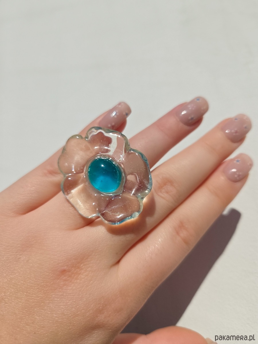 Feruza, turkusowy pierścionek kwiat z przezroczystej żywicy