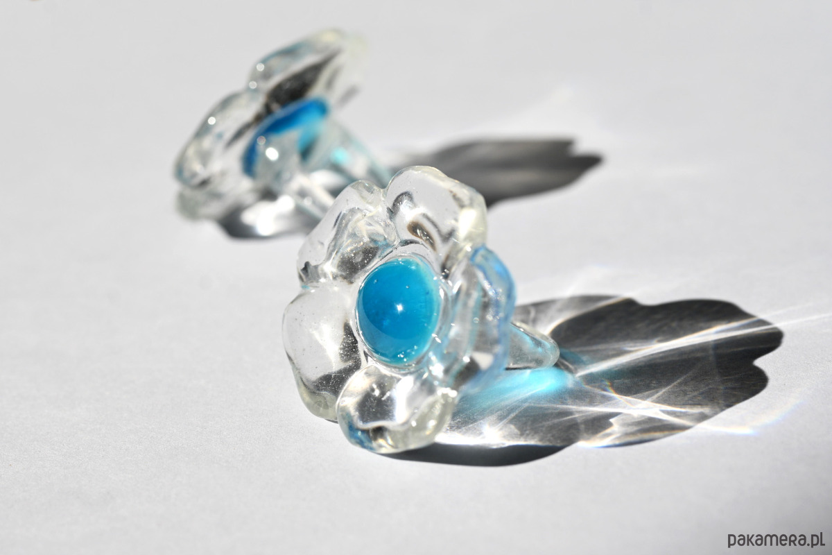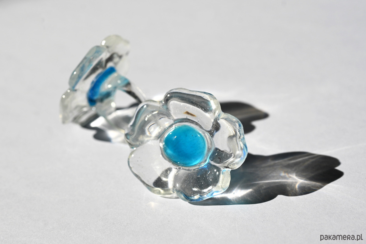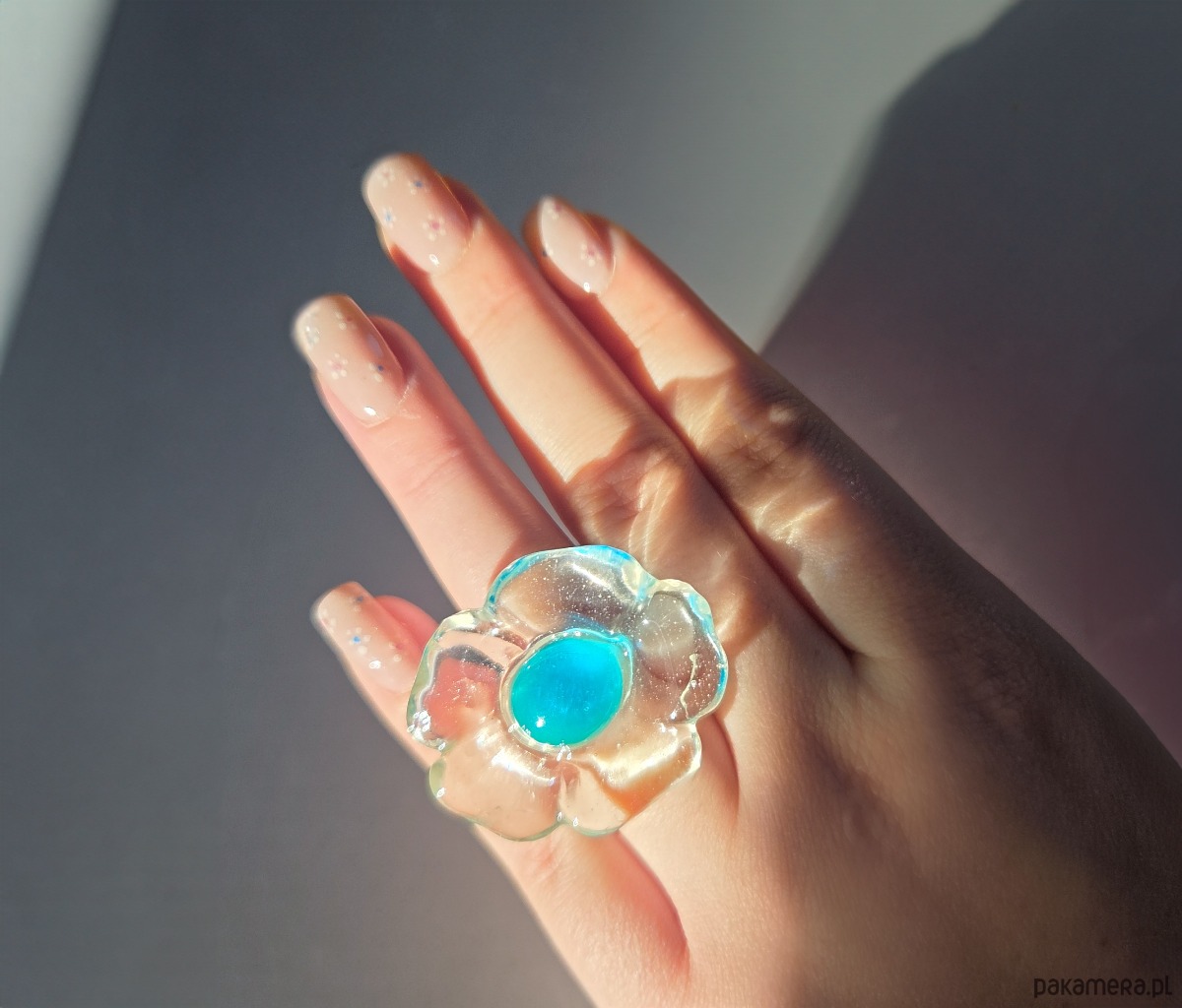 Feruza, turkusowy pierścionek kwiat z przezroczystej żywicy
