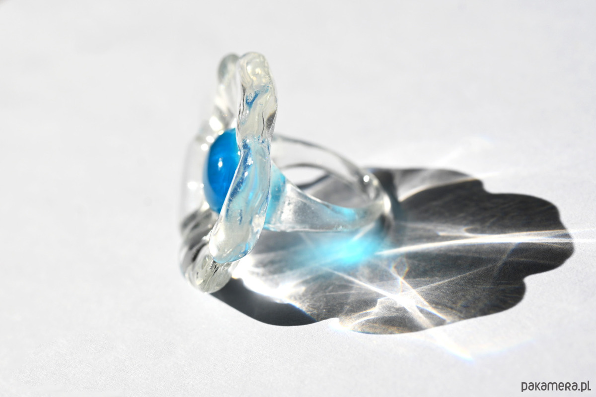Unikatowy pierścień powstaje specjalnie dla Ciebie, wykonany autorską metodą nakładania żywicy, co sprawia, że każdy egzemplarz jest wyjątkowy. W środku osadzony jest turkusowy akcent, który wyróżnia się na tle transparentnej, krystalicznej oprawy. Pierścień jest duży i przyciąga uwagę swoim delikatnym, a zarazem wyrazistym designem. Dzięki przezroczystej formie przypomina kroplę krystalicznie czystej wody z turkusową głębią.