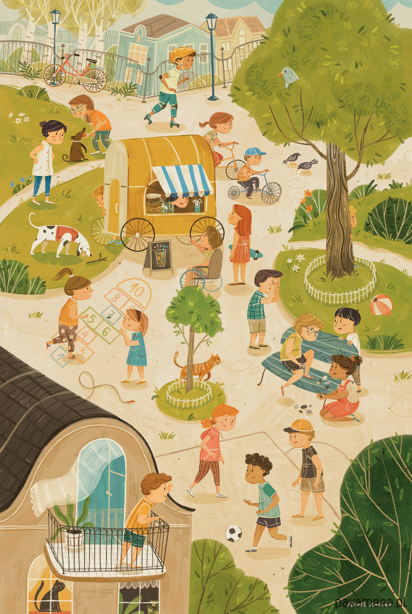 FIGGLE Puzzle 160 Na podwórku. Ilustracja: Marta Kulesza