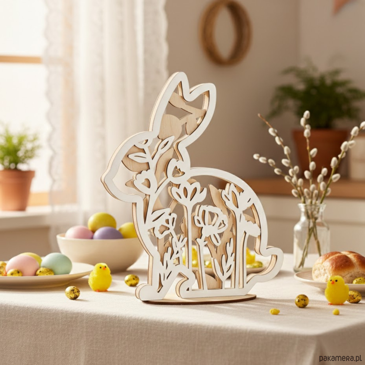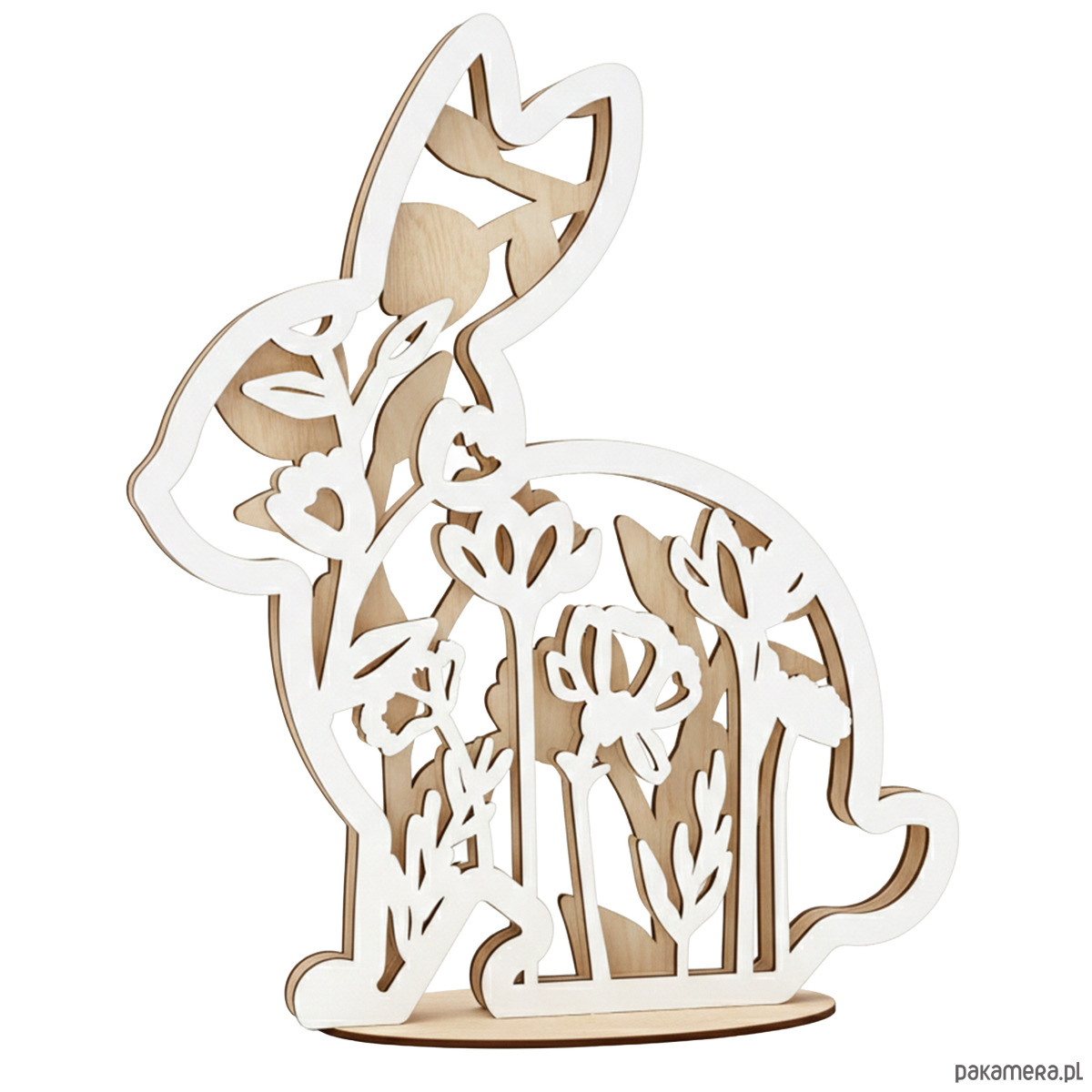 Urocza figurka 2D w kształcie zająca to idealna propozycja na wielkanocne dekoracje i kreatywne projekty. Wykonana z dwóch warstw – naturalnej sklejki oraz kontrastowej białej warstwy MDF, tworzy efektowną, przestrzenną ozdobę mimo formy 2D.Zając doskonale sprawdzi się jako element dekoracyjny do stroików, koszyczków wielkanocnych, dekoracji stołu, półki lub okna. Dzięki warstwowej konstrukcji figurka prezentuje się estetycznie i przyciąga wzrok.