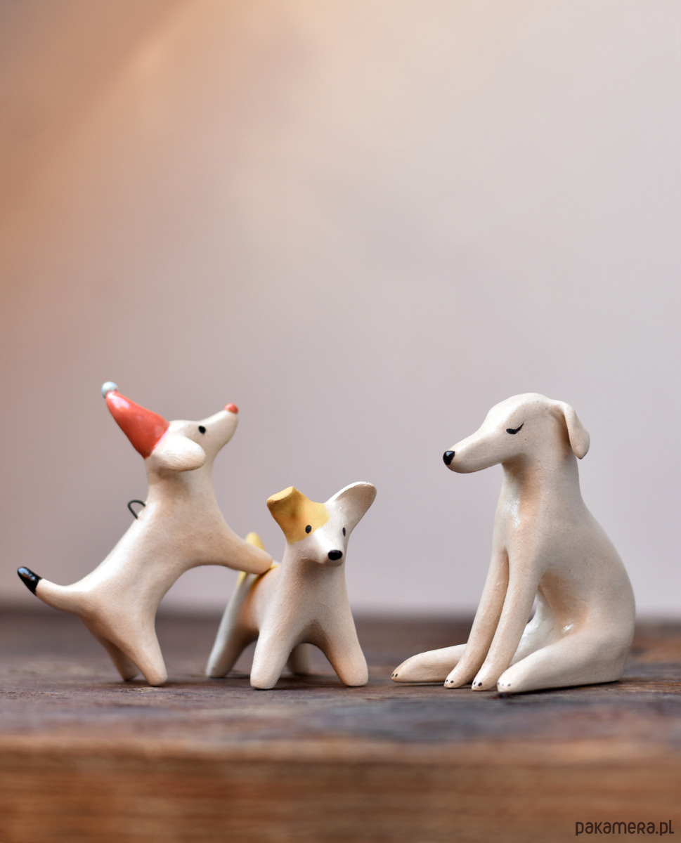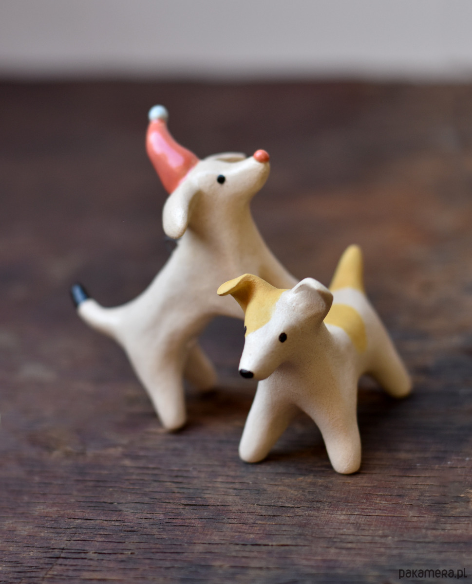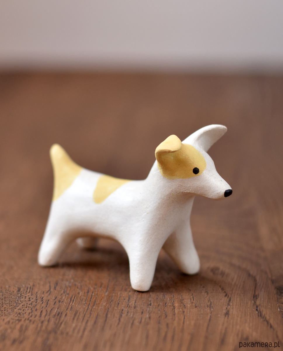 Mała figurka ceramiczna przedstawiająca pieska w rude łatki od Richie Acapulco, to unikatowa rzeźba od początku do końca wykonana ręcznie.