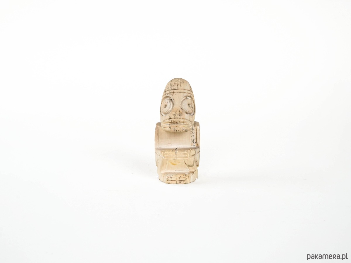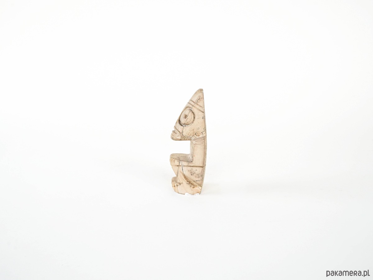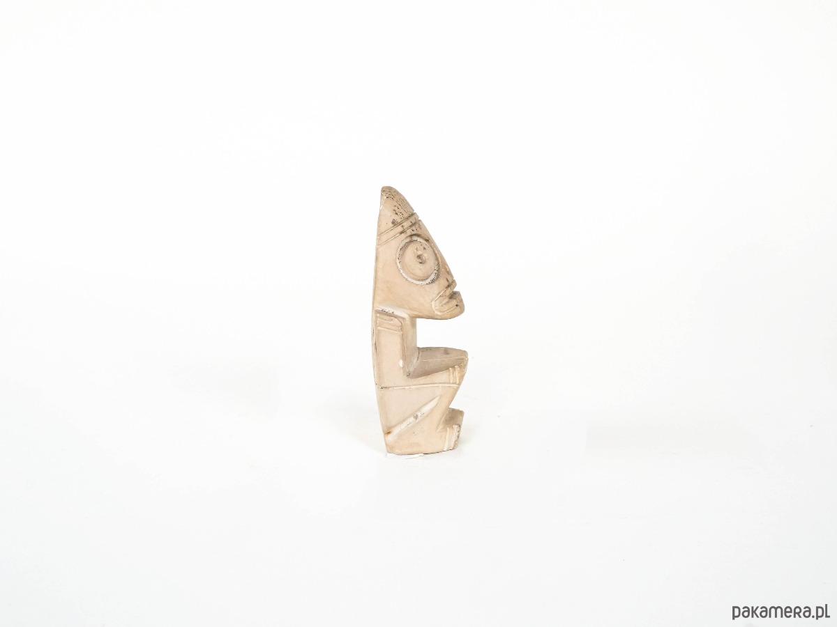 Figurka o stylizowanych, geometrycznych kształtach, nawiązująca do estetyki sztuki plemiennej. Uproszczona forma i wyraziste detale nadają jej symboliczny charakter, a patyna powierzchni podkreśla dekoracyjną wartość obiektu.