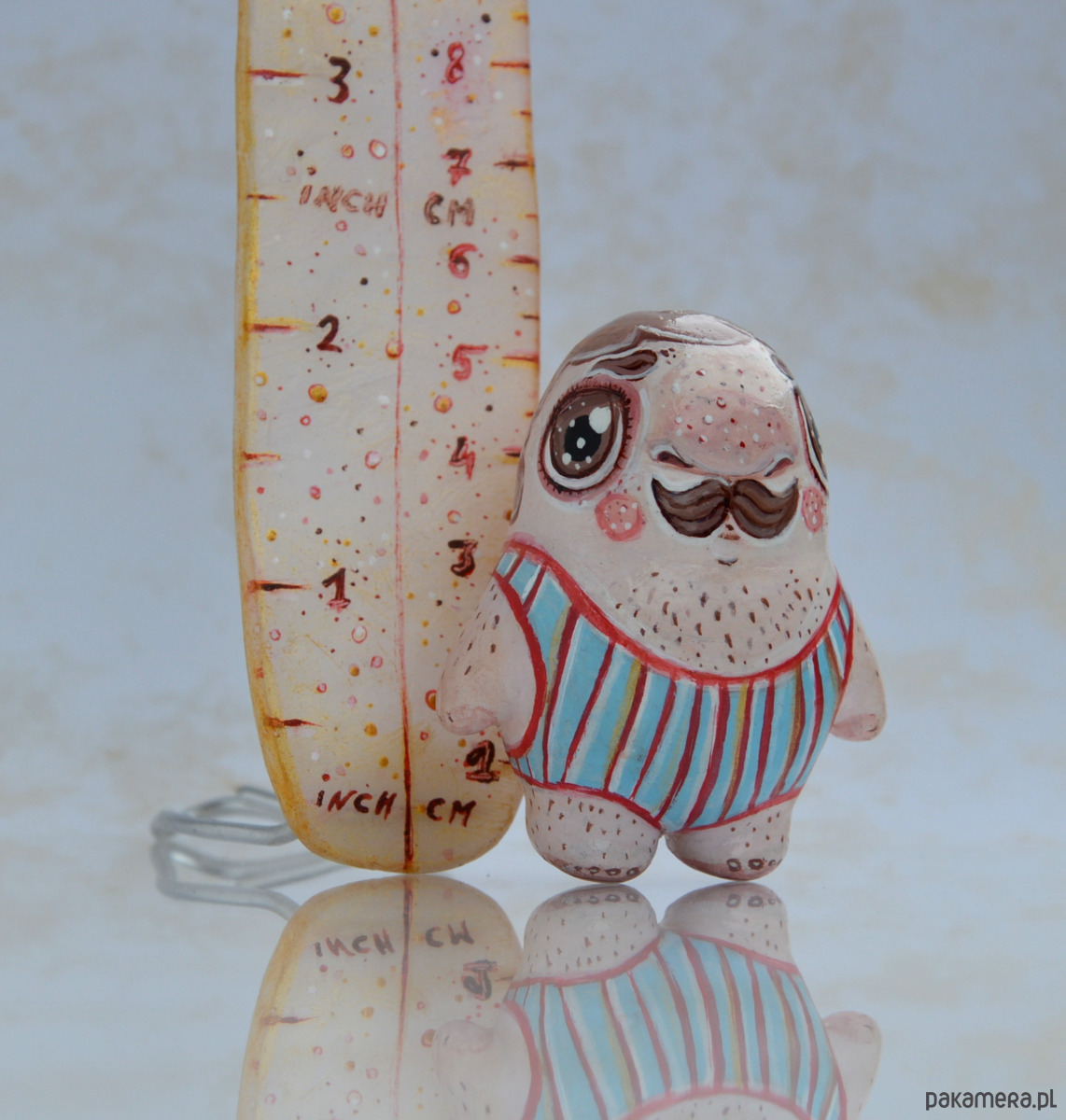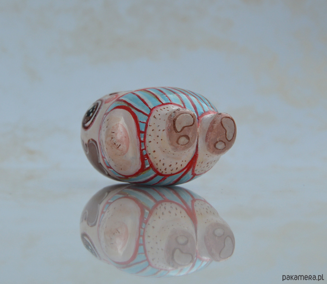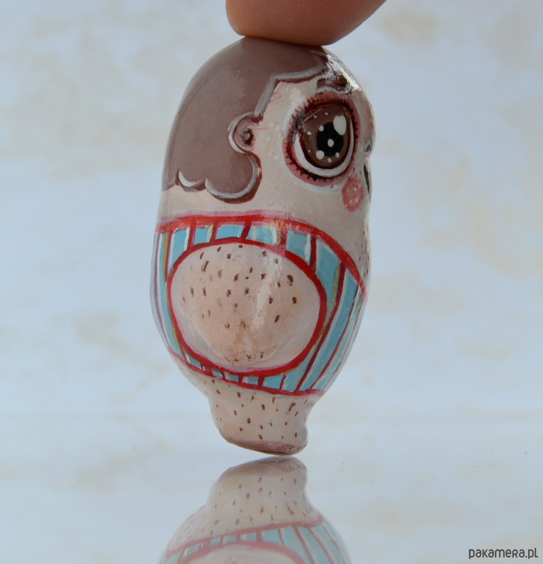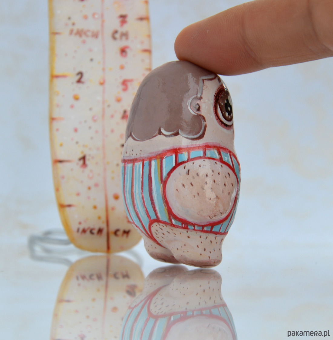 Została wykonana z gliny polimerowej, malowana farbami akrylowymi oraz tuszem, następnie pokryta lakierem akrylowym.
