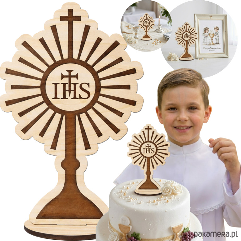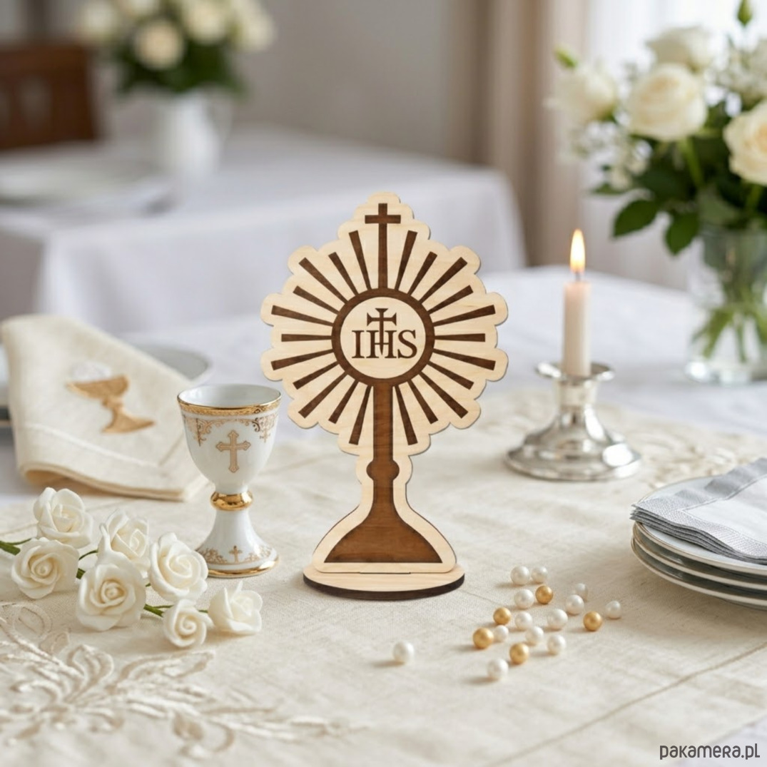 Figurka Kielich IHS 20cm Drewniana Ozdoba na Stół Komunię Topper na Tort