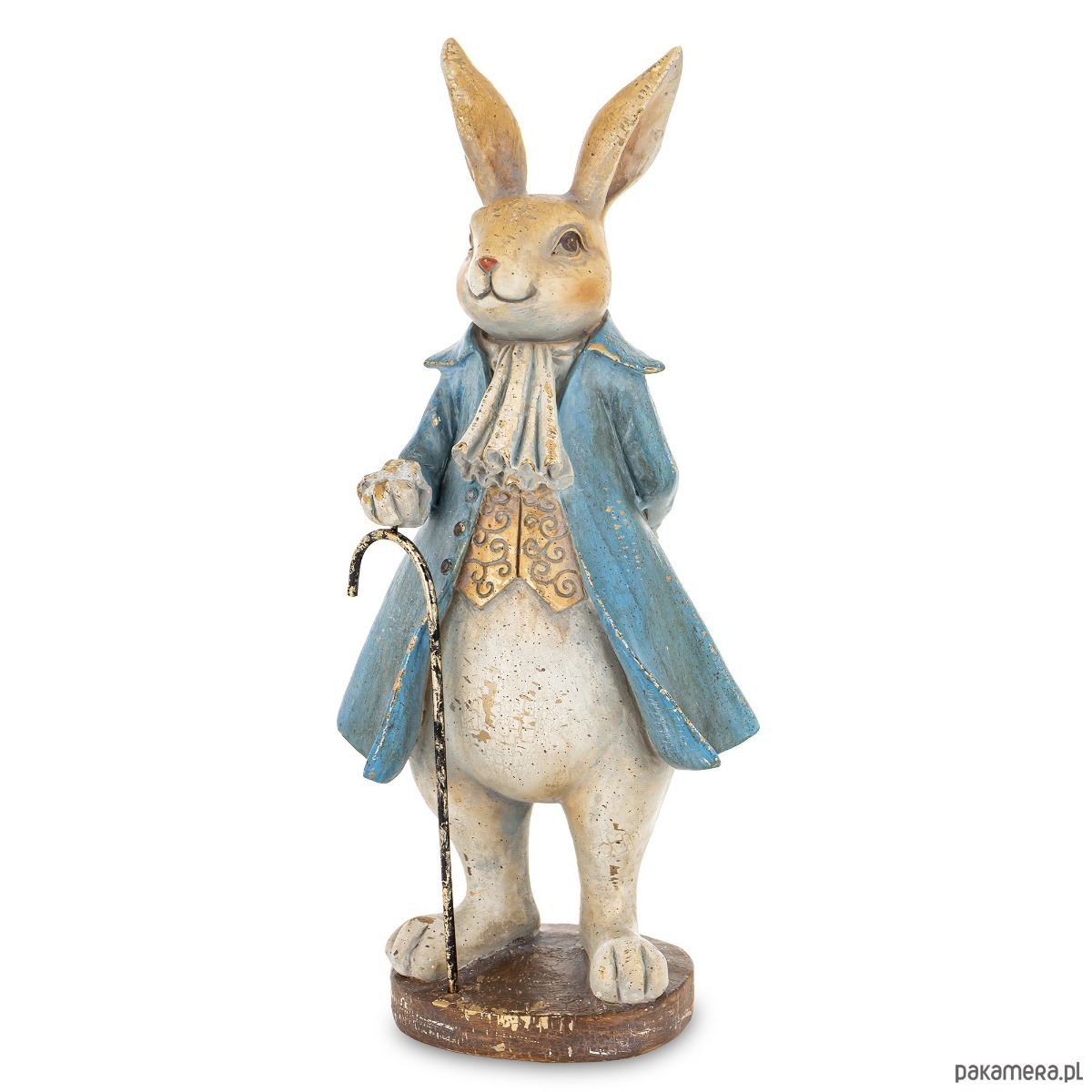 Urocza figurka eleganckiego króliczka wykonana z kolorowego tworzywa sztucznego jest trwała i łatwa w pielęgnacji. Zadowolony królik w niebieskim płaszczu opiera się na lasce. Dzięki zastosowaniu wysokiej jakości materiałów zachowuje swój kształt i kolor przez długi czas. To wyjątkowy element, który doda uroku każdemu wnętrzu. Oryginalny wygląd postaci sprawia, że staje się doskonałą ozdobą zarówno w salonie jak i w pokoju dziecięcym.