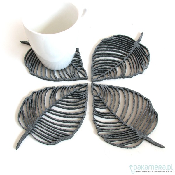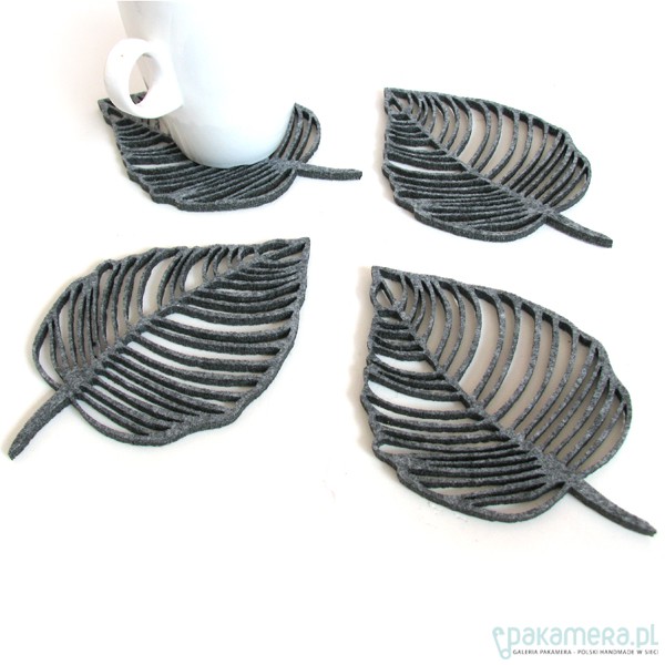 Filcowe liście pod kubki, szare, 4s