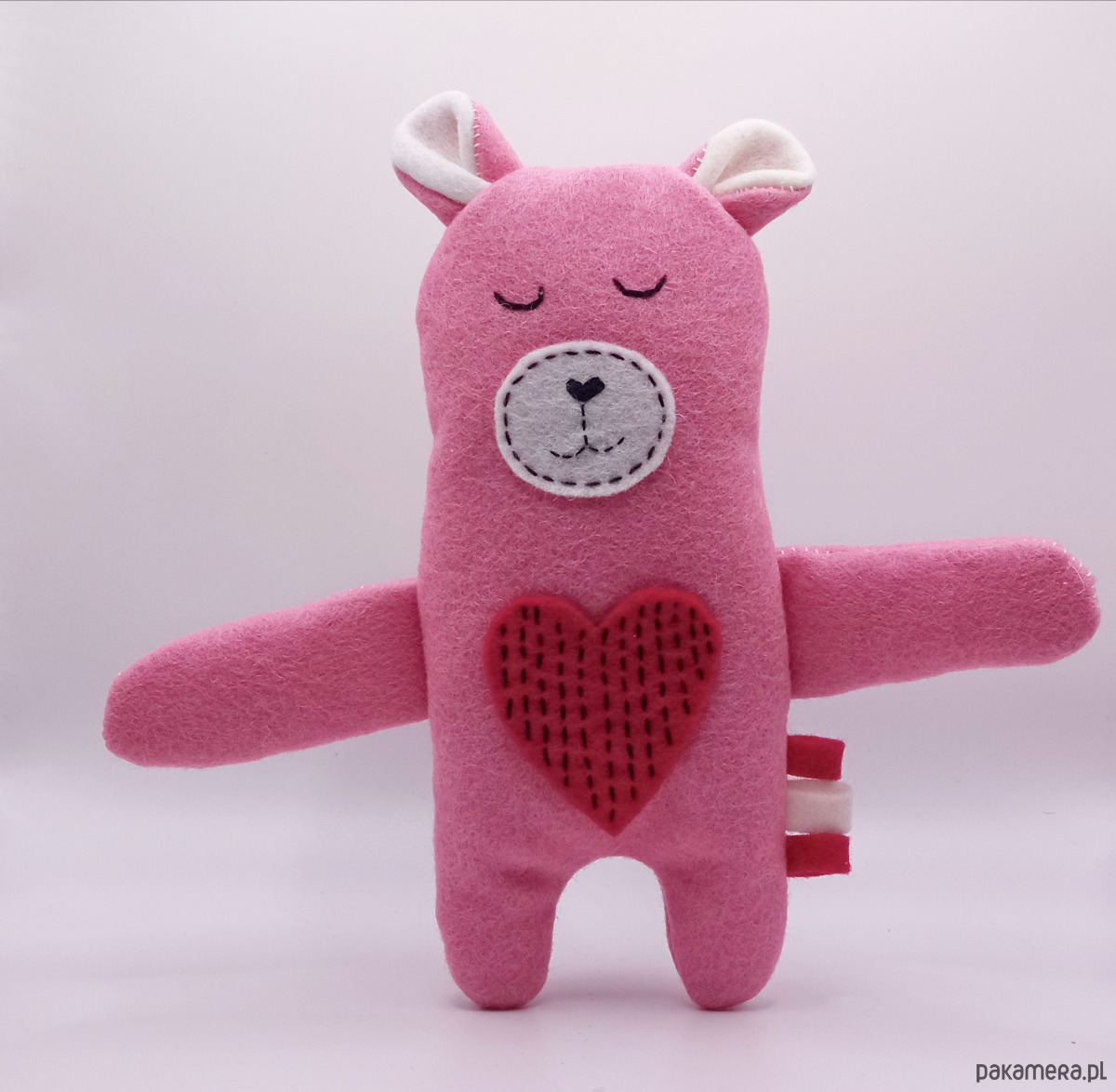 Filcowy Misio z brzuszkiem w kształcie serduszka.