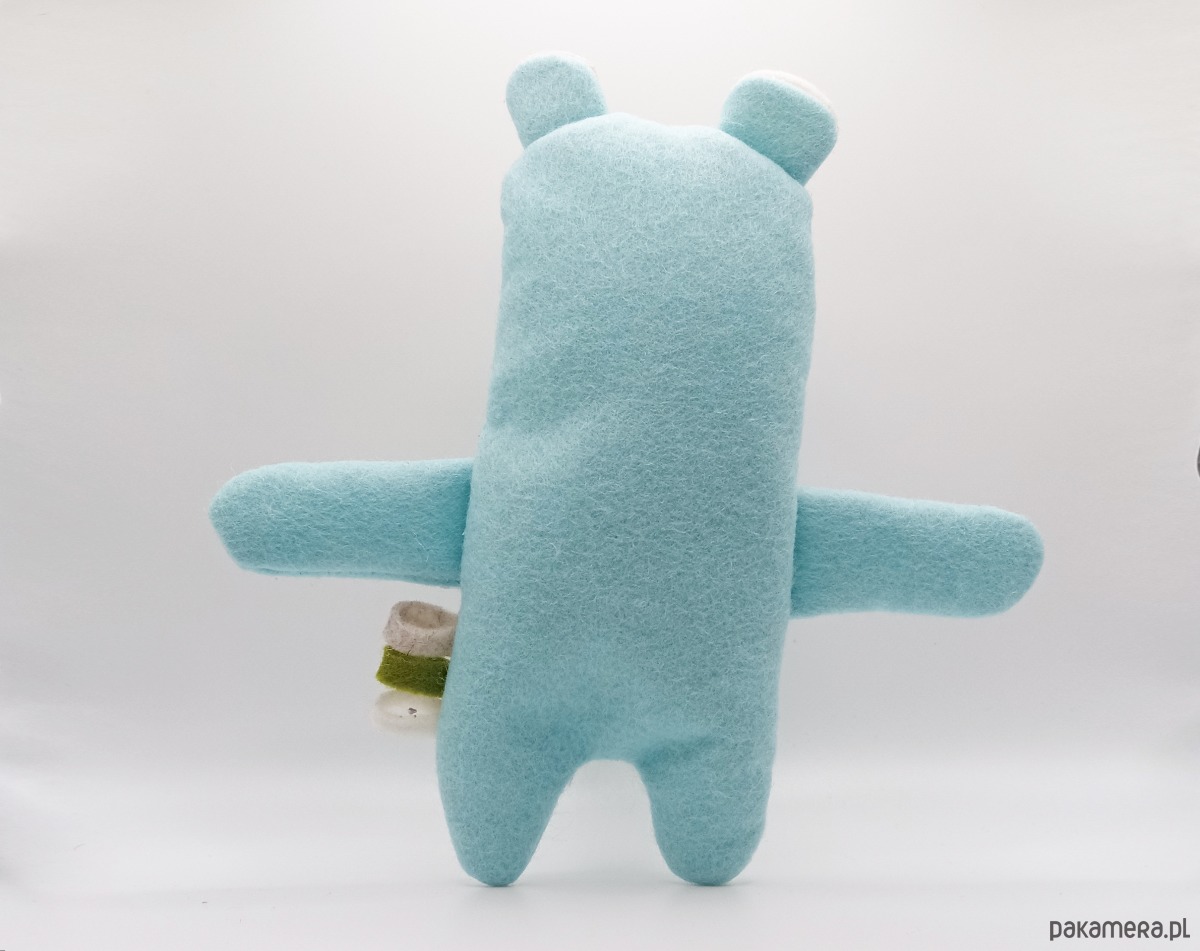 Wykonany został ręcznie z filcu wełnianego, który jest bezpieczny dla niemowląt i dzieci, posiada certyfikat Oeko Tex Standard 100, spełnia europejskie normy bezpieczeństwa UNE EN 71, UNE EN 71-2, UNE EN 71-3 i był przetestowany pod kątem substancji chemicznych uznawanych za szkodliwe dla zdrowia, takich jak ołów i spełnia najwyższą klasę bezpieczeństwa.
