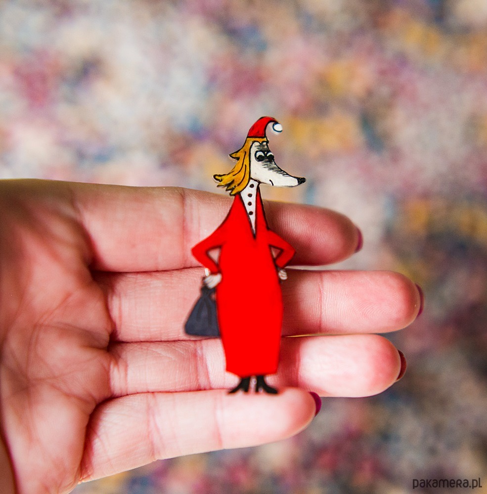Super broszka ręcznie rysowana, zabezpieczona lakierem ekologicznym. Powierzchnia broszki jest błyszcząca.