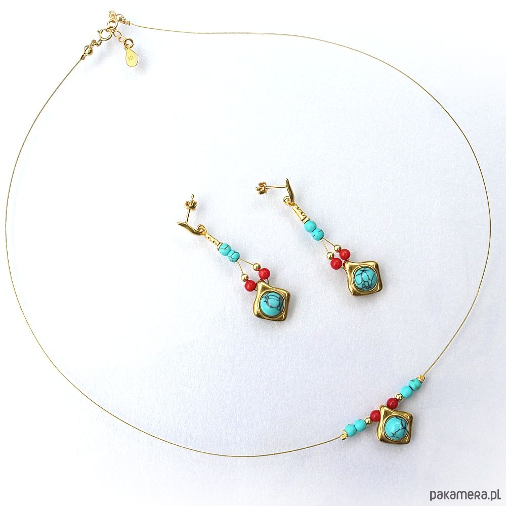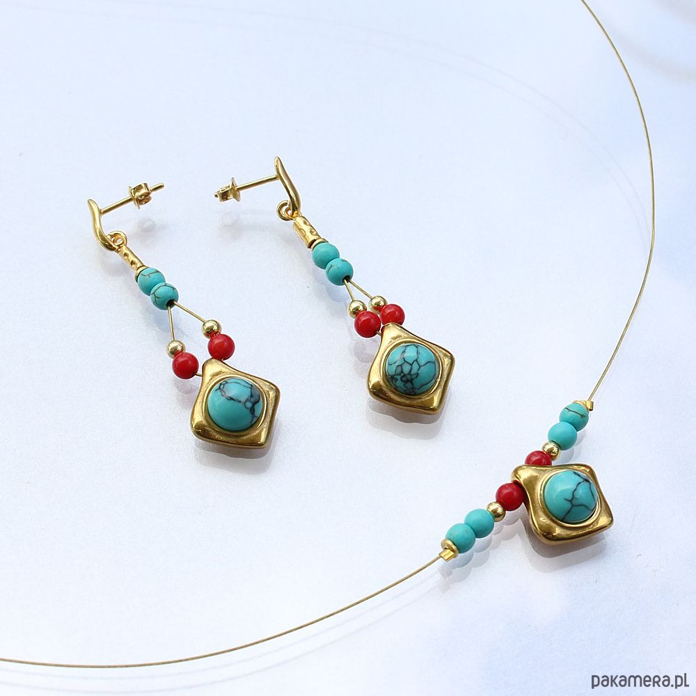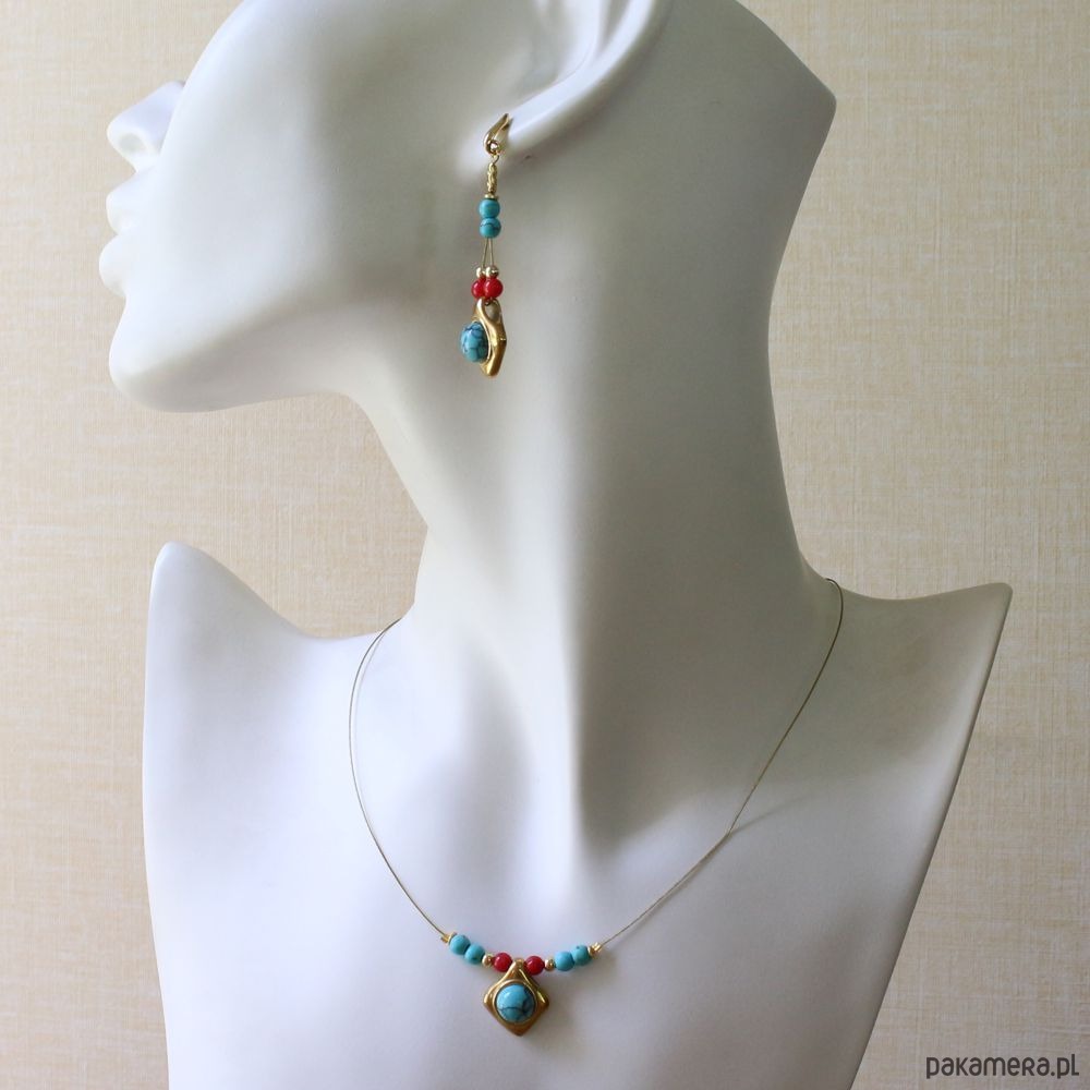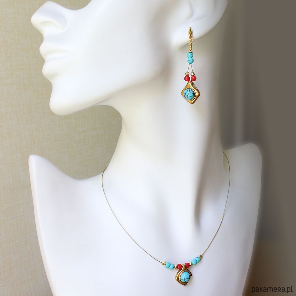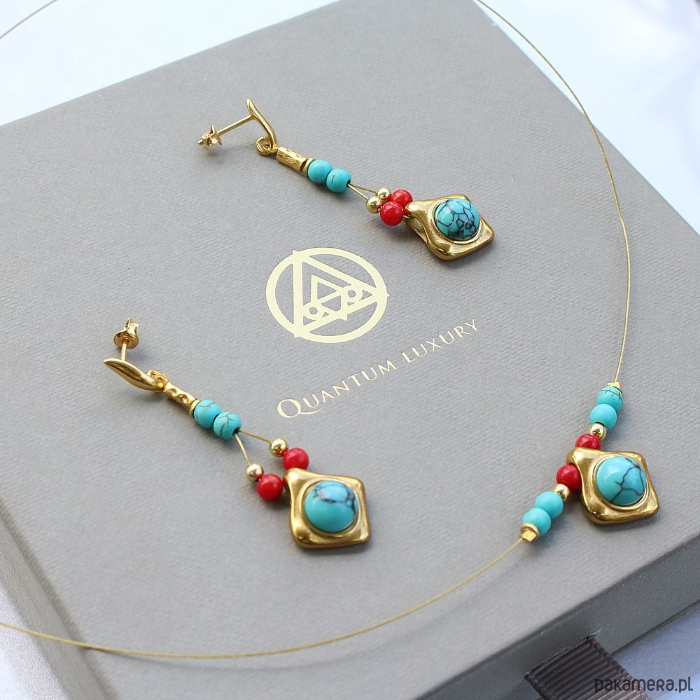 Autorski, energetyczny komplet biżuterii (kolczyki + wisiorek) z turkusem, koralem czerwonym i hematytami wspierający uzdrawianie czakry gardła i podstawy. Filigranowy, leciutki i bardzo efektowny na żywo! Oczyszczony, zregenerowany, napełniony energią czystego światła o najwyższej wibracji. ❤