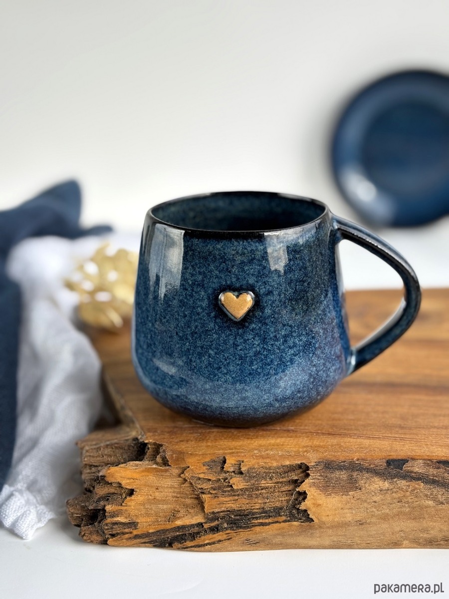 Filiżanka beczułka ręcznie robiona z sercem 320 ml - Granatowa