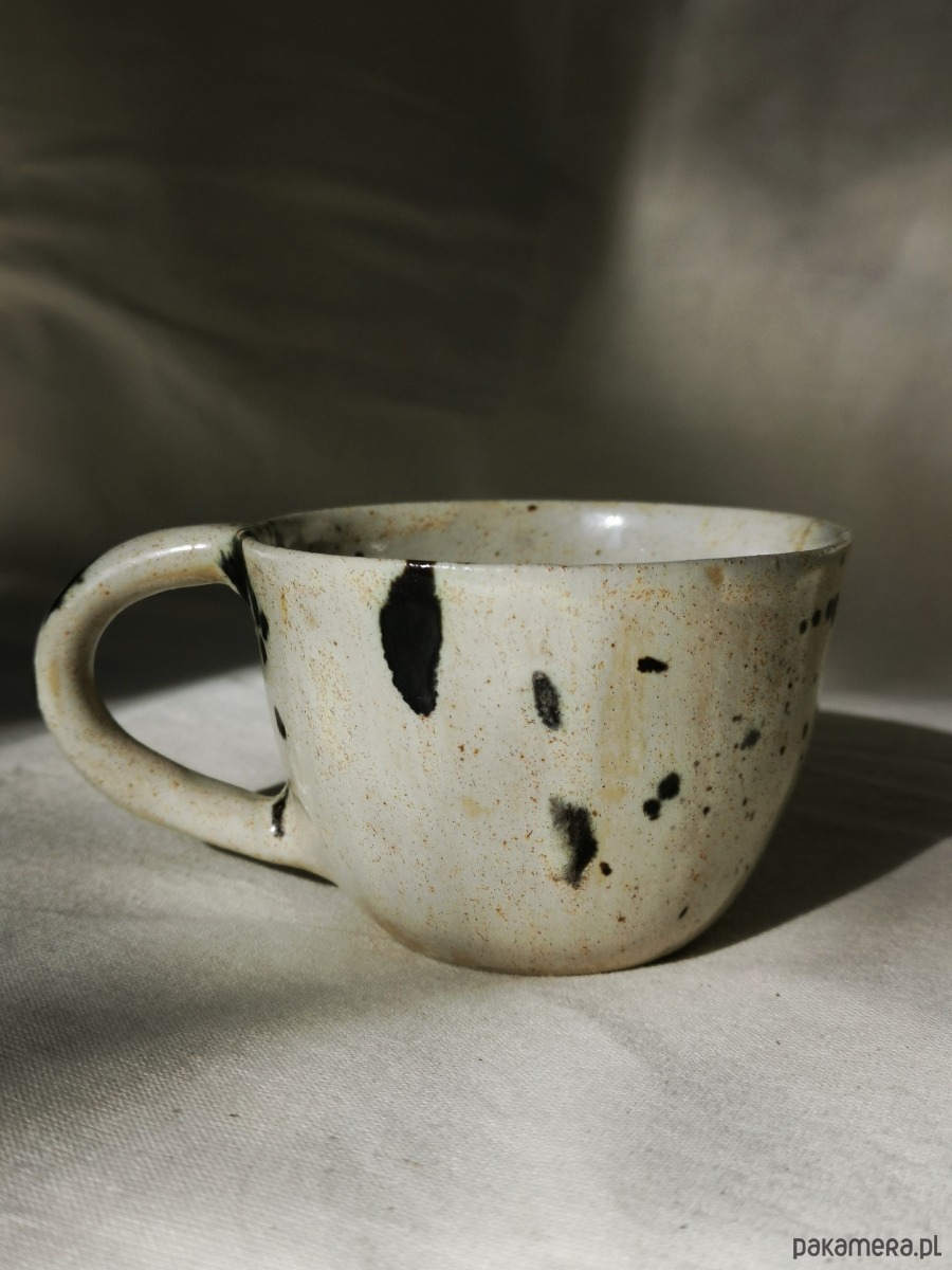 Ręcznie toczona filiżanka o naturalnym, beżowym odcieniu ze złotymi i ciemnymi akcentami. Subtelna, a jednocześnie charakterystyczna – przyciąga wzrok niecodziennym połączeniem prostoty i ciepła. Każda filiżanka jest niepowtarzalna, dzięki czemu ma swój własny rytm i historię.