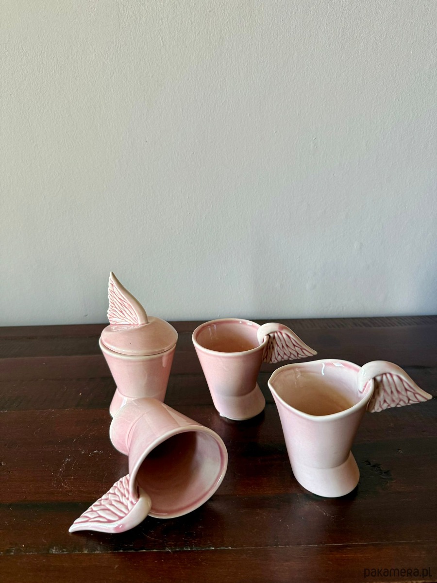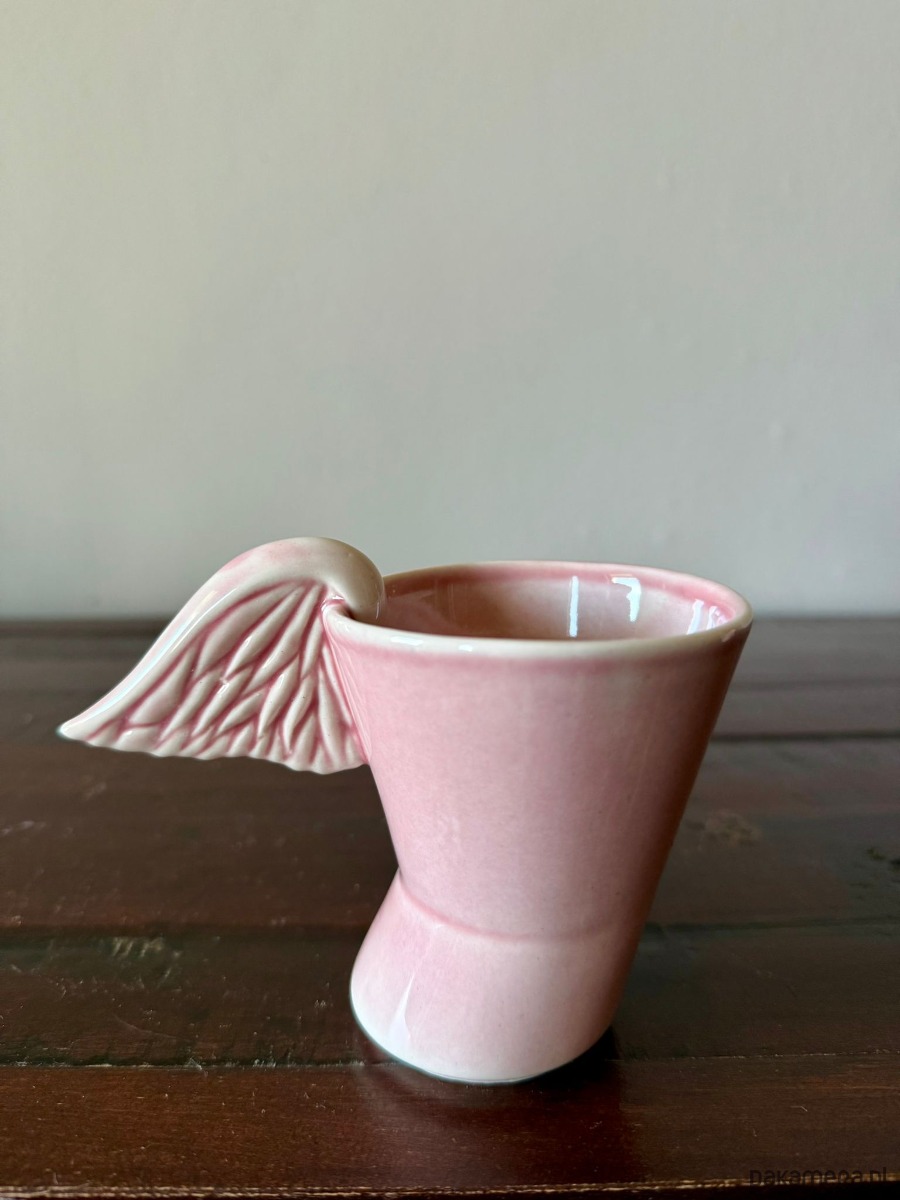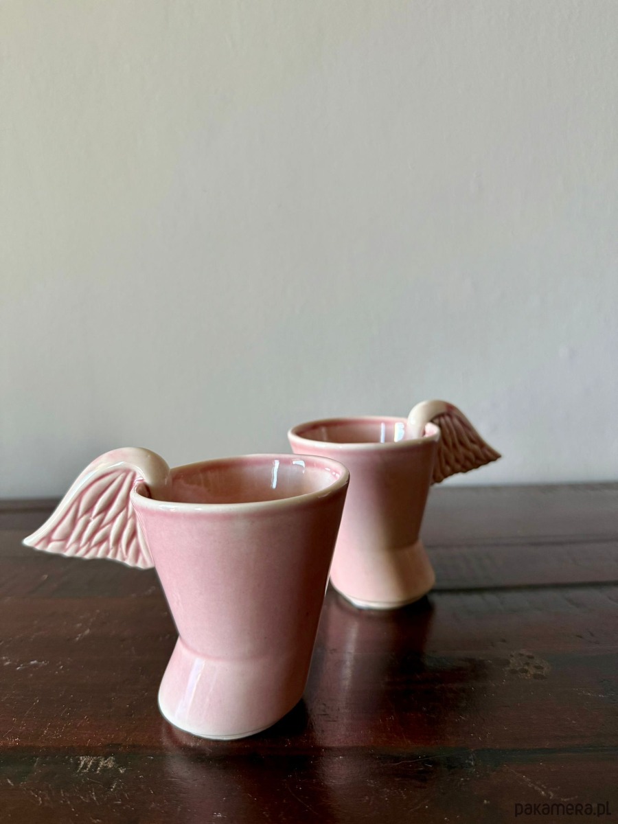 Ręcznie wykonana filiżanka z kolekcji Angel to wyjątkowy element ceramiki artystycznej, który łączy w sobie nowoczesny design i delikatność formy. Pokryta błyszczącym szkliwem w odcieniu subtelnego różu, zachwyca lekkością i elegancją. Uchwyt w kształcie skrzydła anioła nadaje jej niepowtarzalny charakter i sprawia, że każda kawa czy herbata staje się wyjątkowym rytuałem.