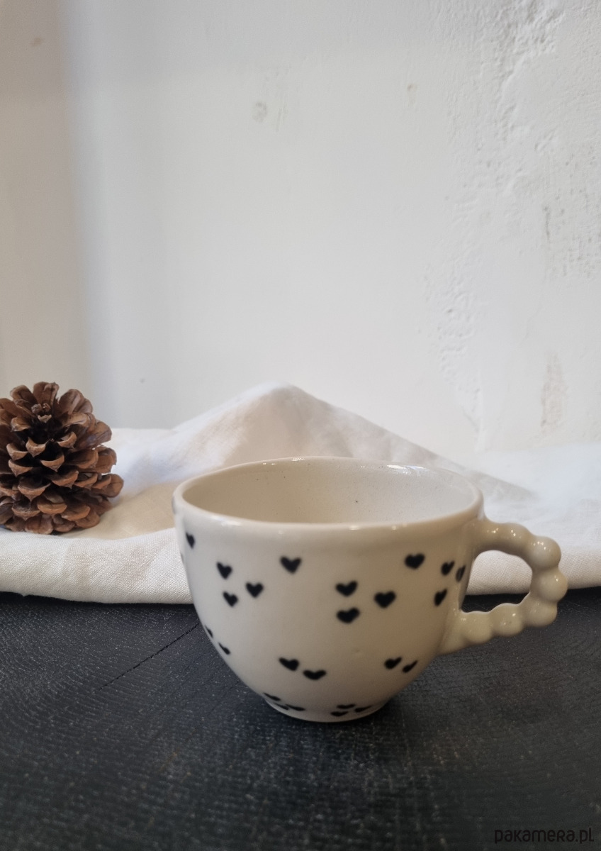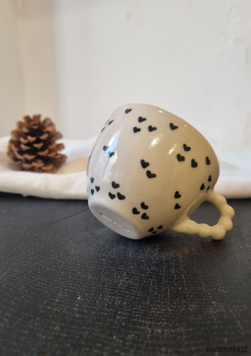 - Kolor: czarne serduszka na bardzo jasnym beżowym tle.