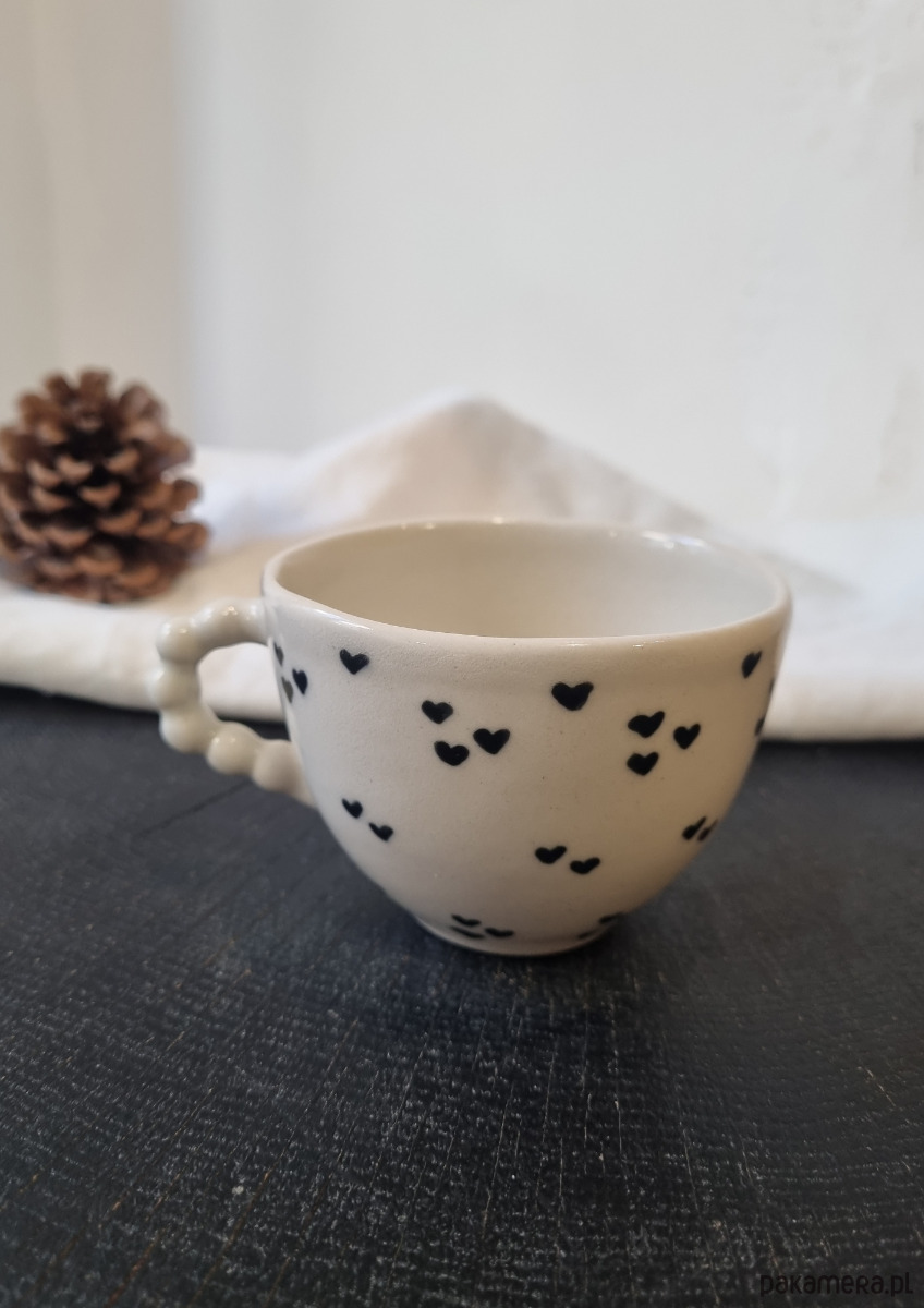 Przedstawiamy wyjątkową ręcznie malowaną filiżankę ceramiczną z ozdobnym uchem.