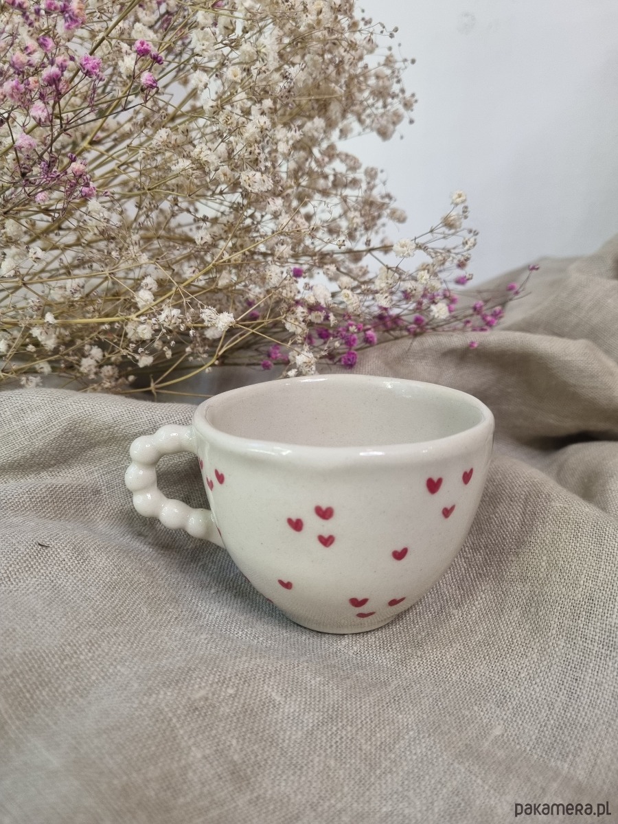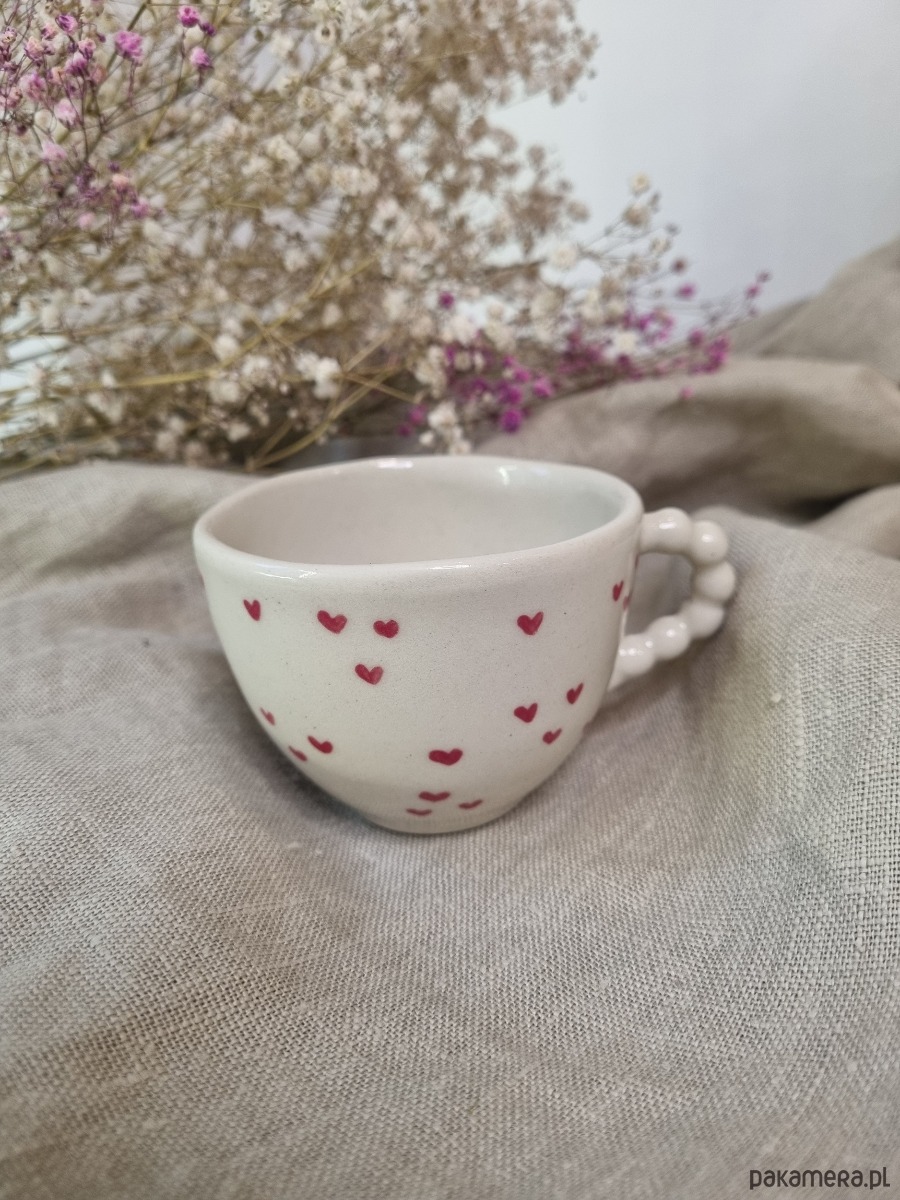 Przedstawiamy wyjątkową ręcznie malowaną filiżankę ceramiczną z ozdobnym uchem.