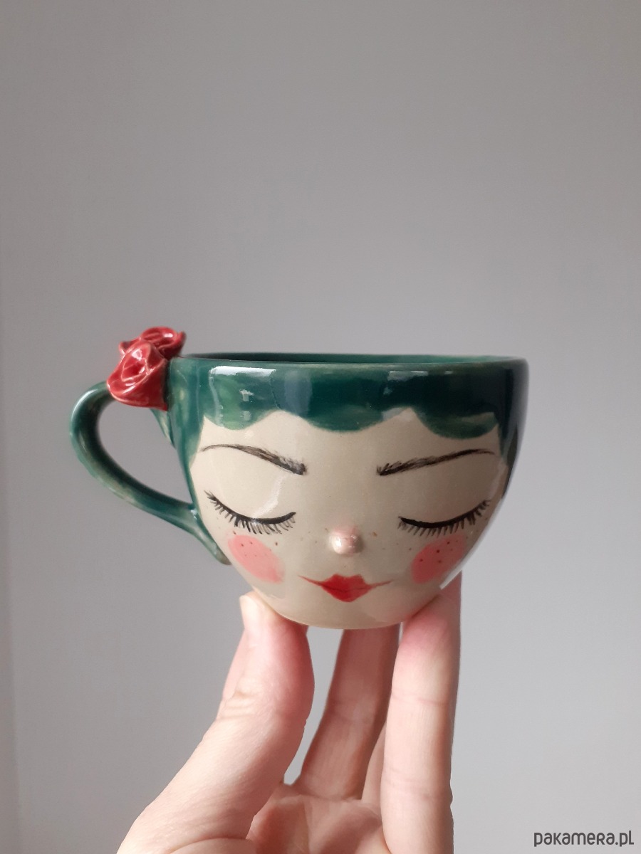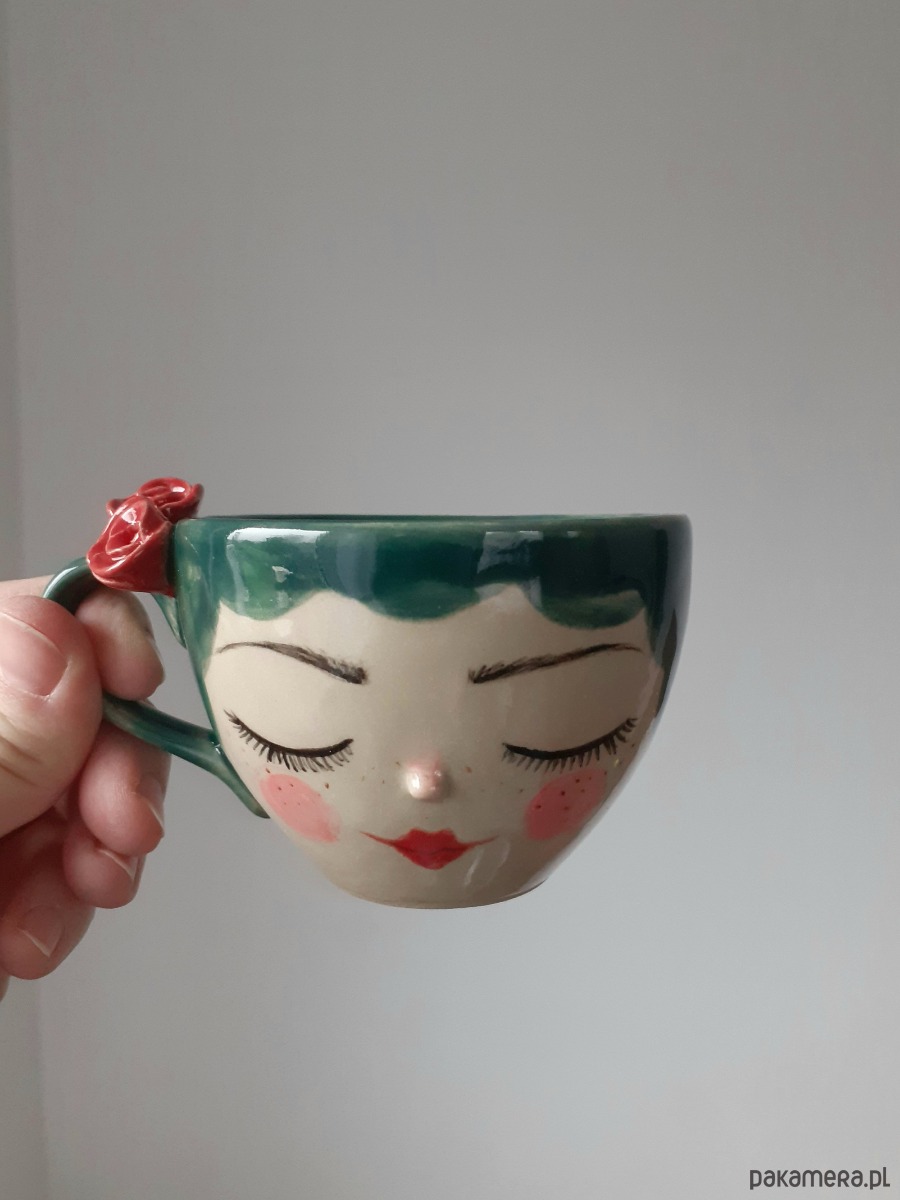 Filiżanka ceramiczna z twarzą, "Zielona dziewczyna "
