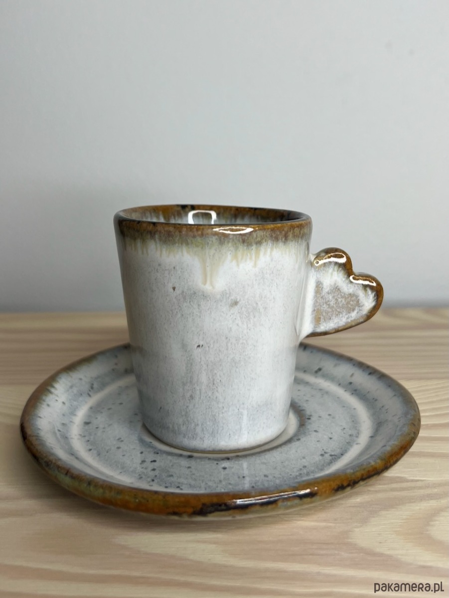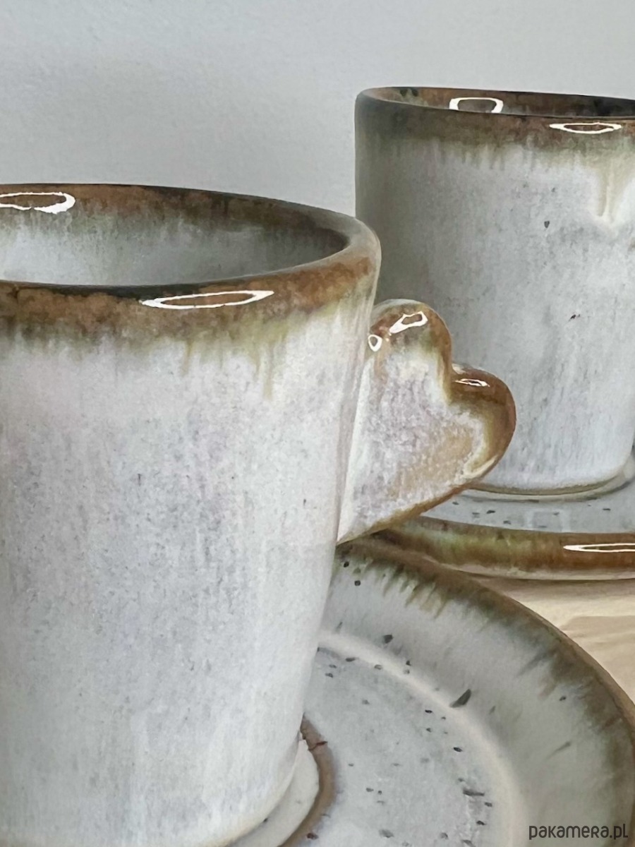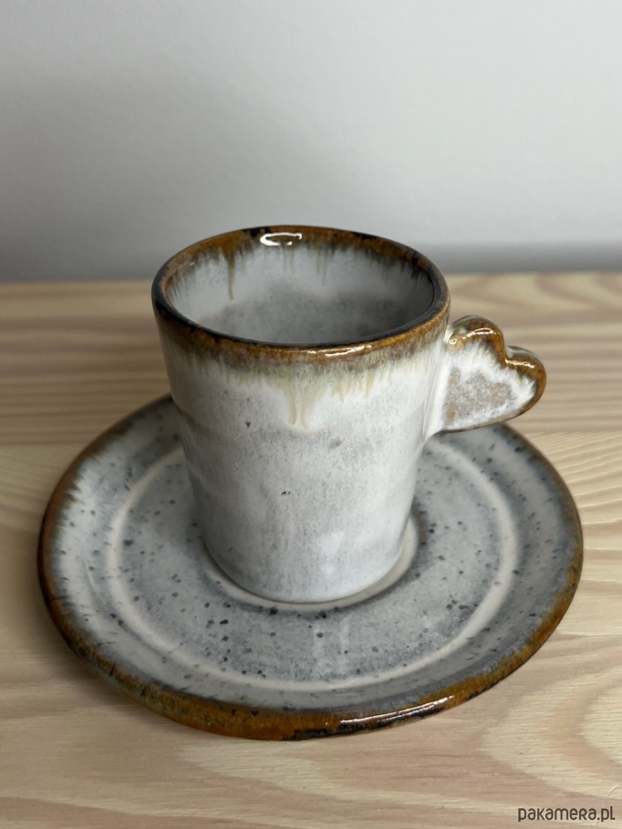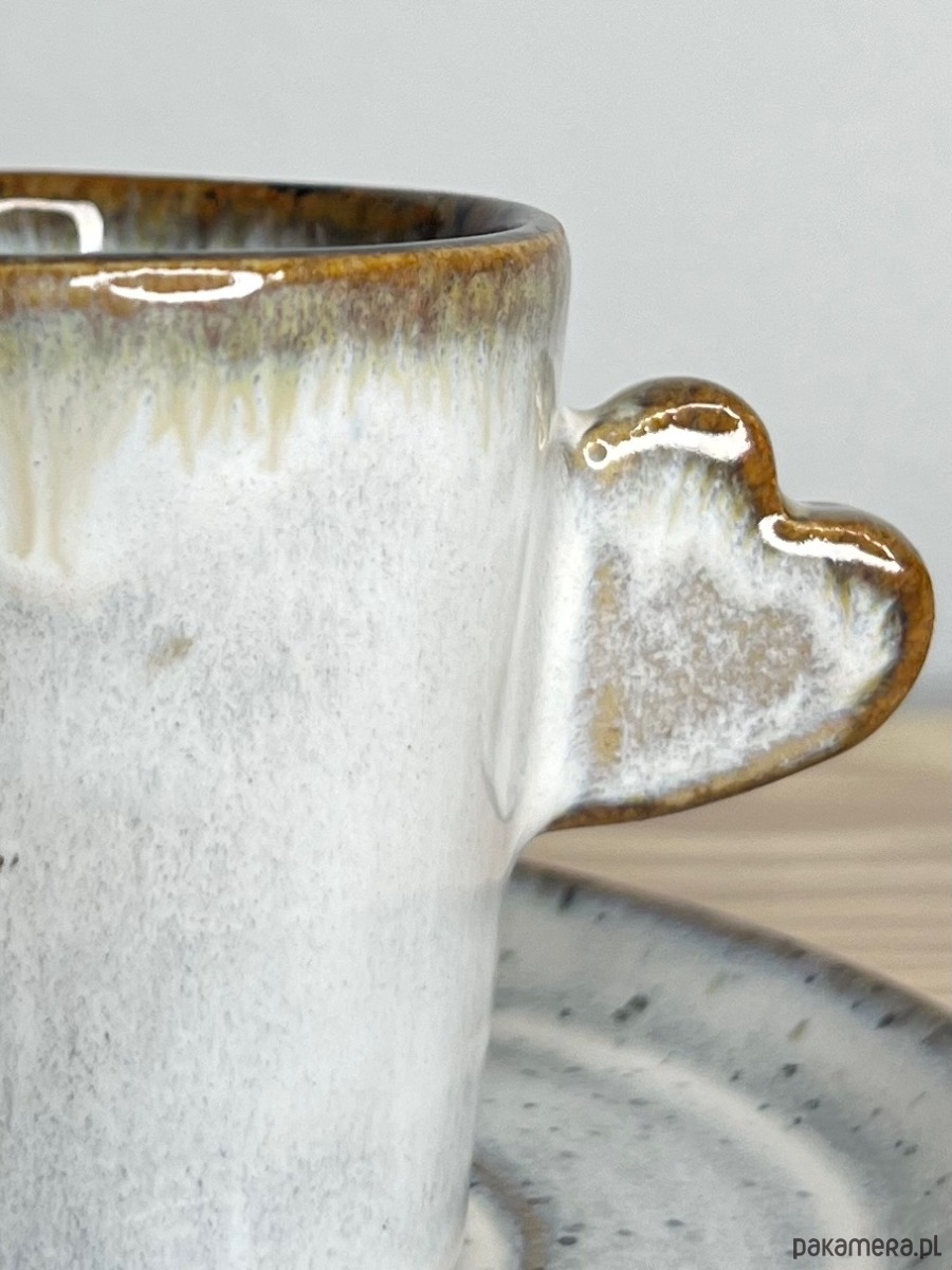 Ręczne ulepiona i proszkliwiona szkliwami dedykowanymi do kontaktu z żywnością.