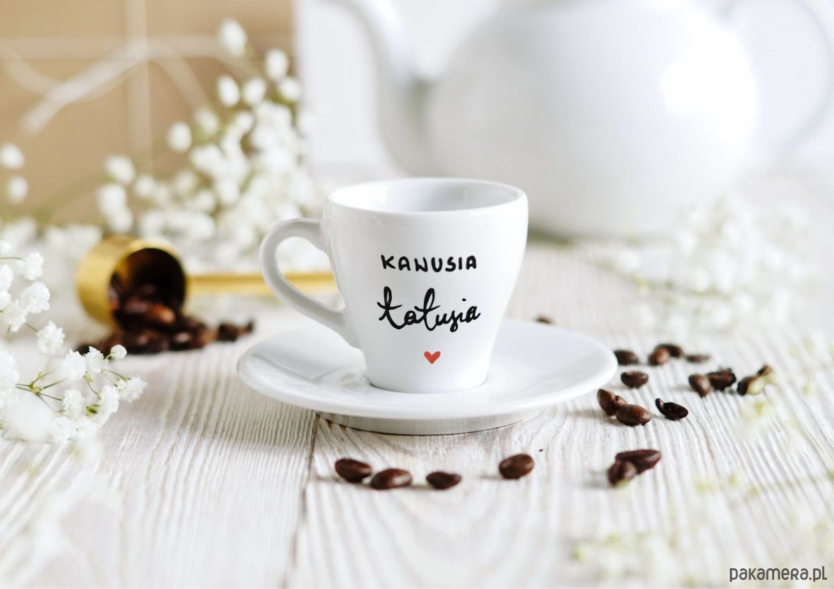 Dodatkowa personalizacja : Na spodku filiżanki możemy dopisać dowolny krótki tekst (do 6 słów) – jeśli chcesz skorzystać z tej opcji dodaj do koszyka produkt PERSONALIZACJA KUBKA dostępny w naszym sklepie.