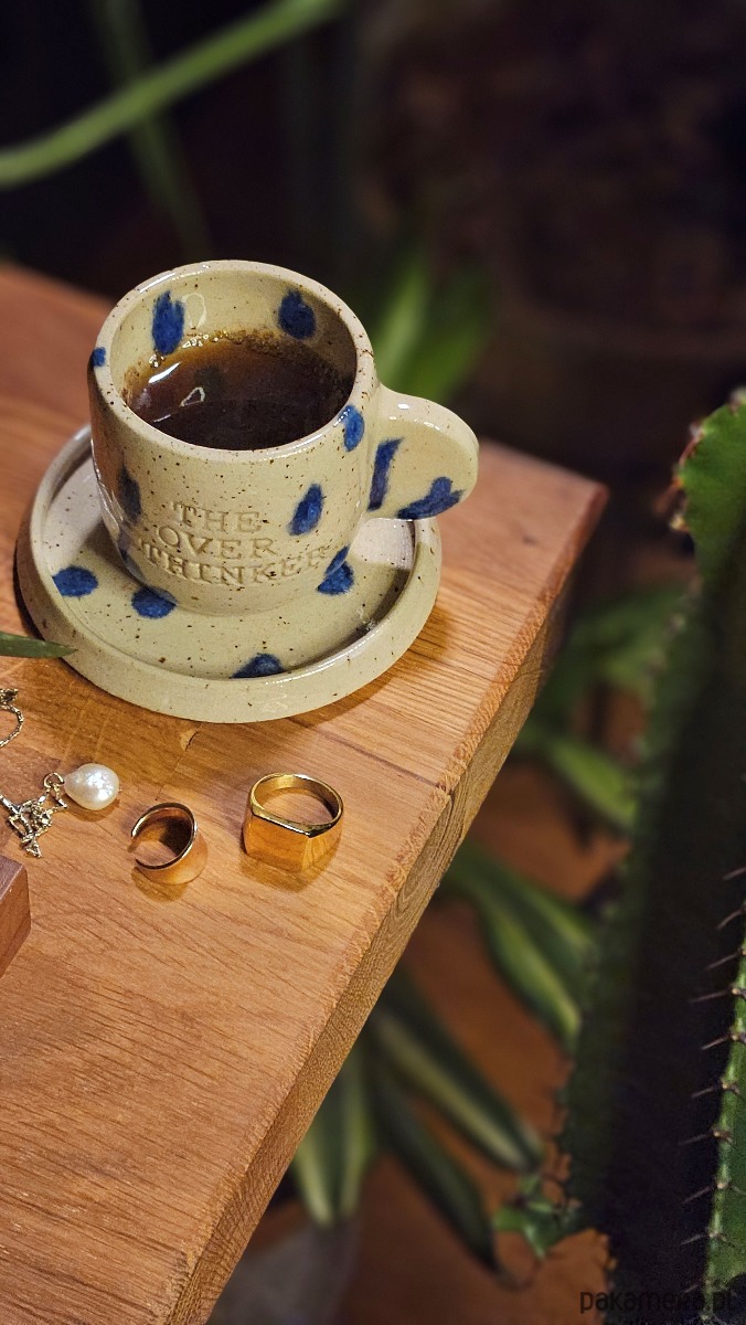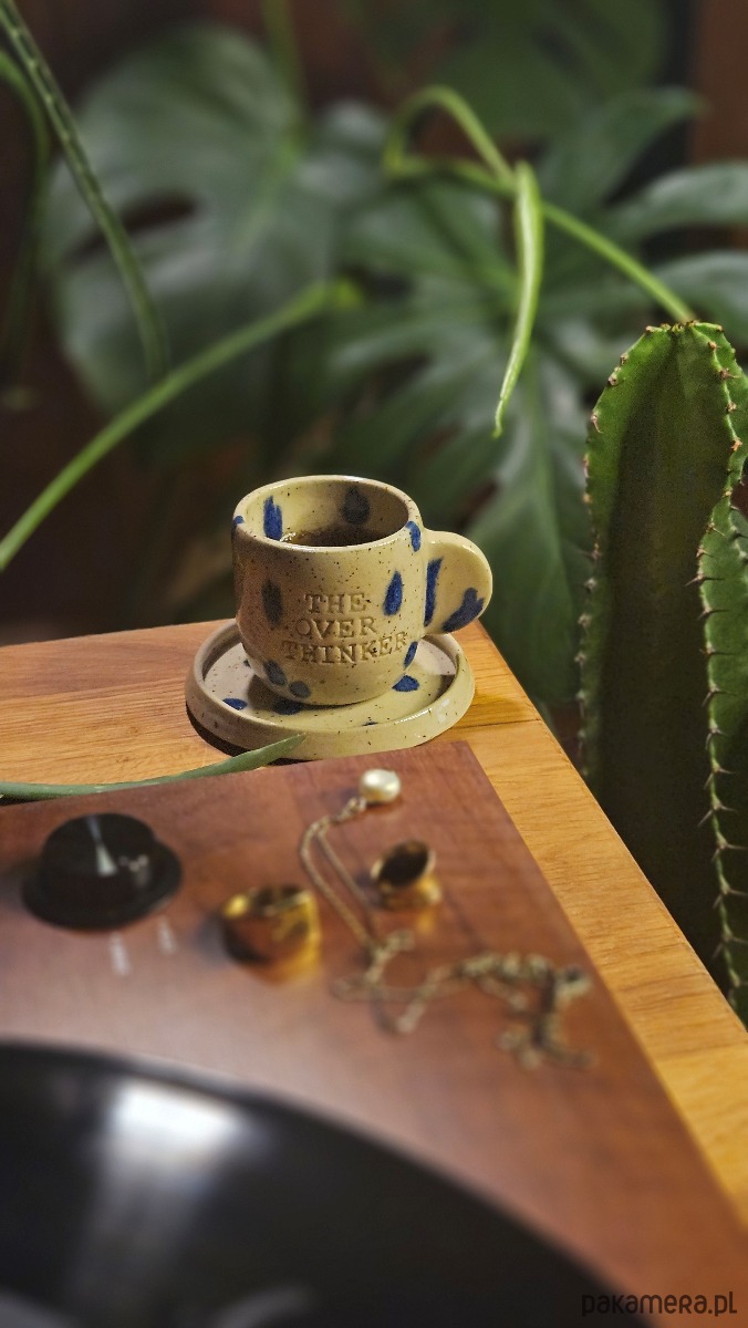 The Overthinker to mała filiżanka ze spodeczkiem. Nie da się ukryć przeznaczenia - przede wszystkim na espresso (lub double espresso).