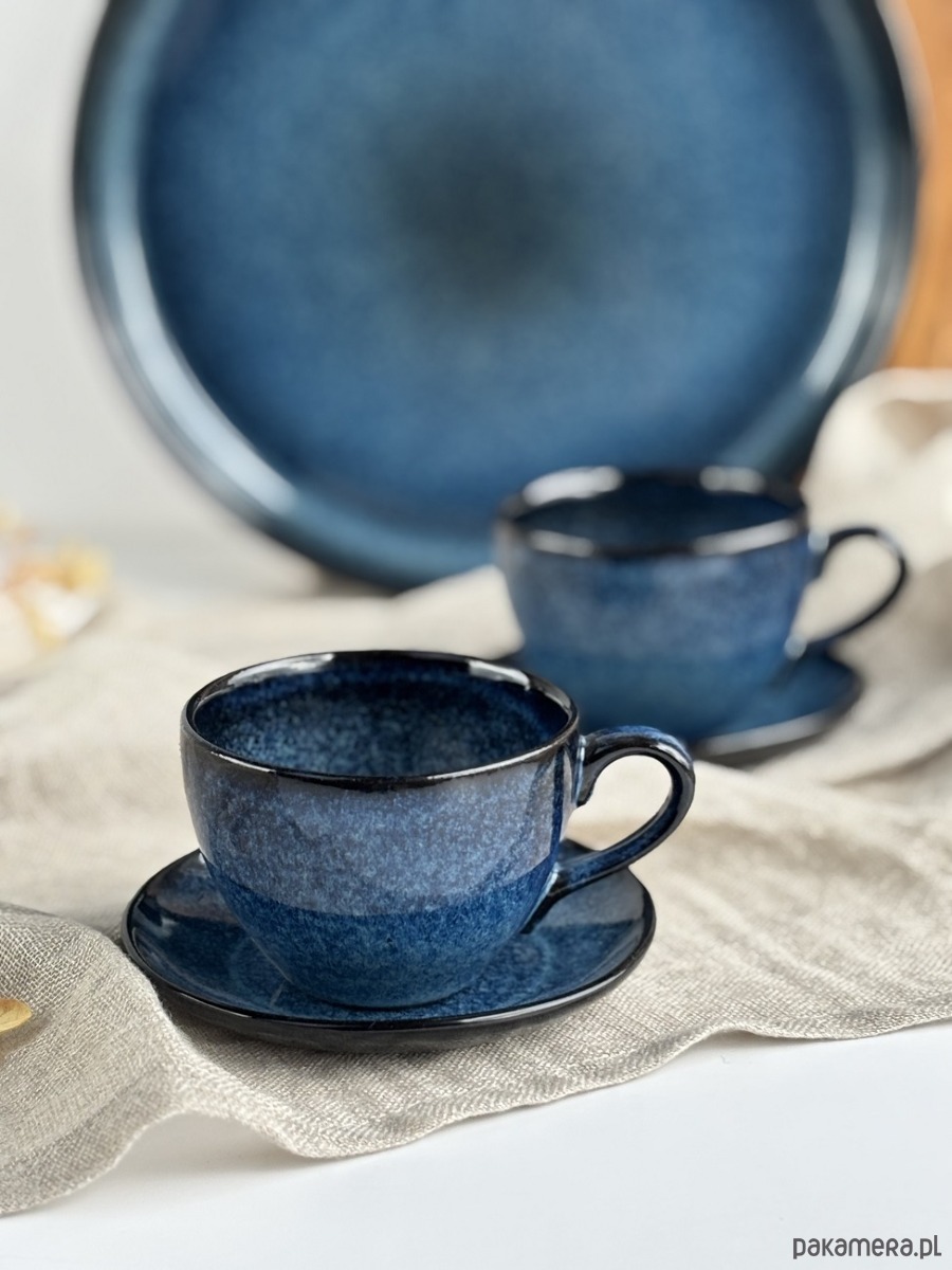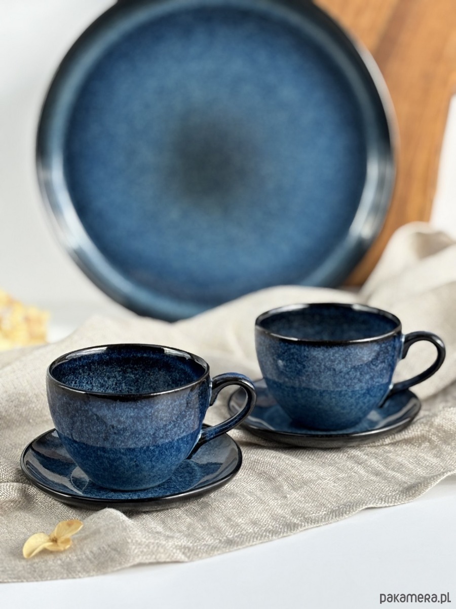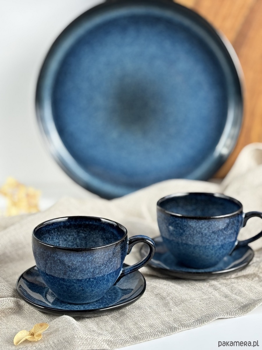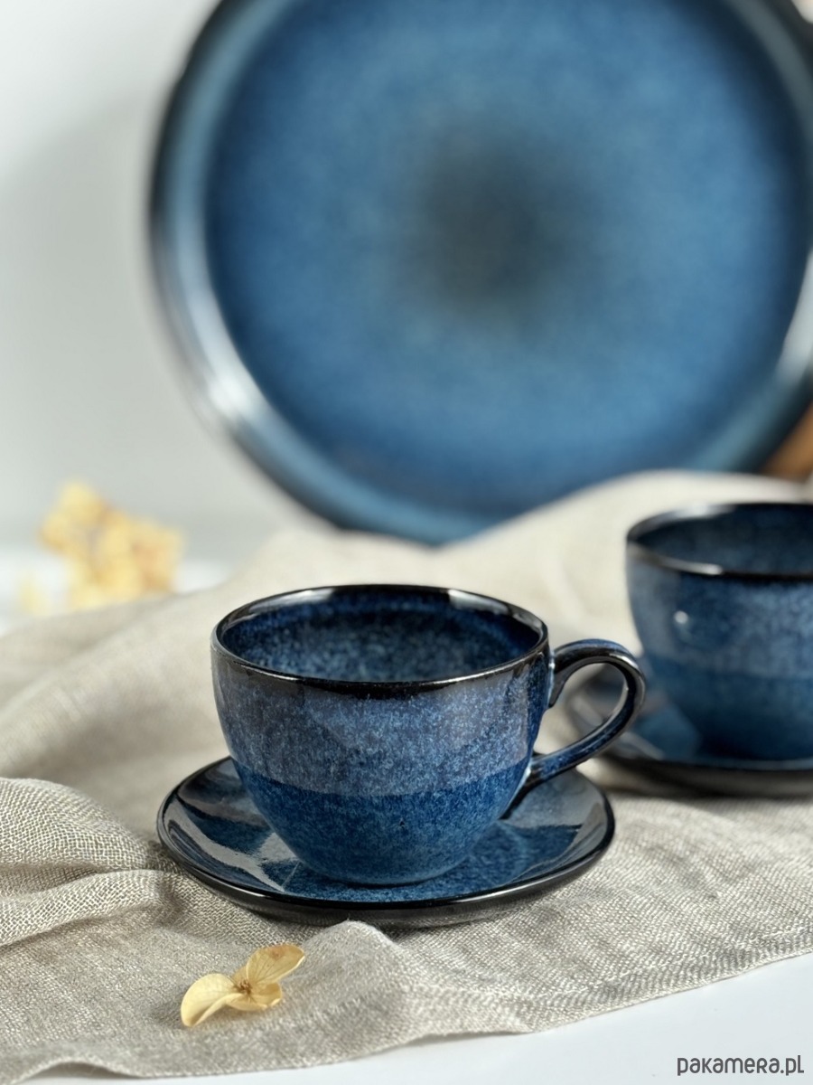 Filiżanki zachwycają głębią koloru i pięknym połyskiem szkliwa, przypominającym rozgwieżdżone niebo.