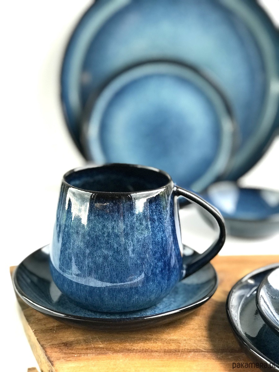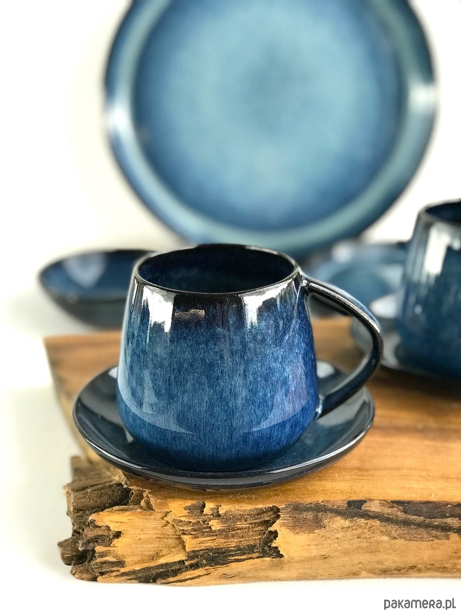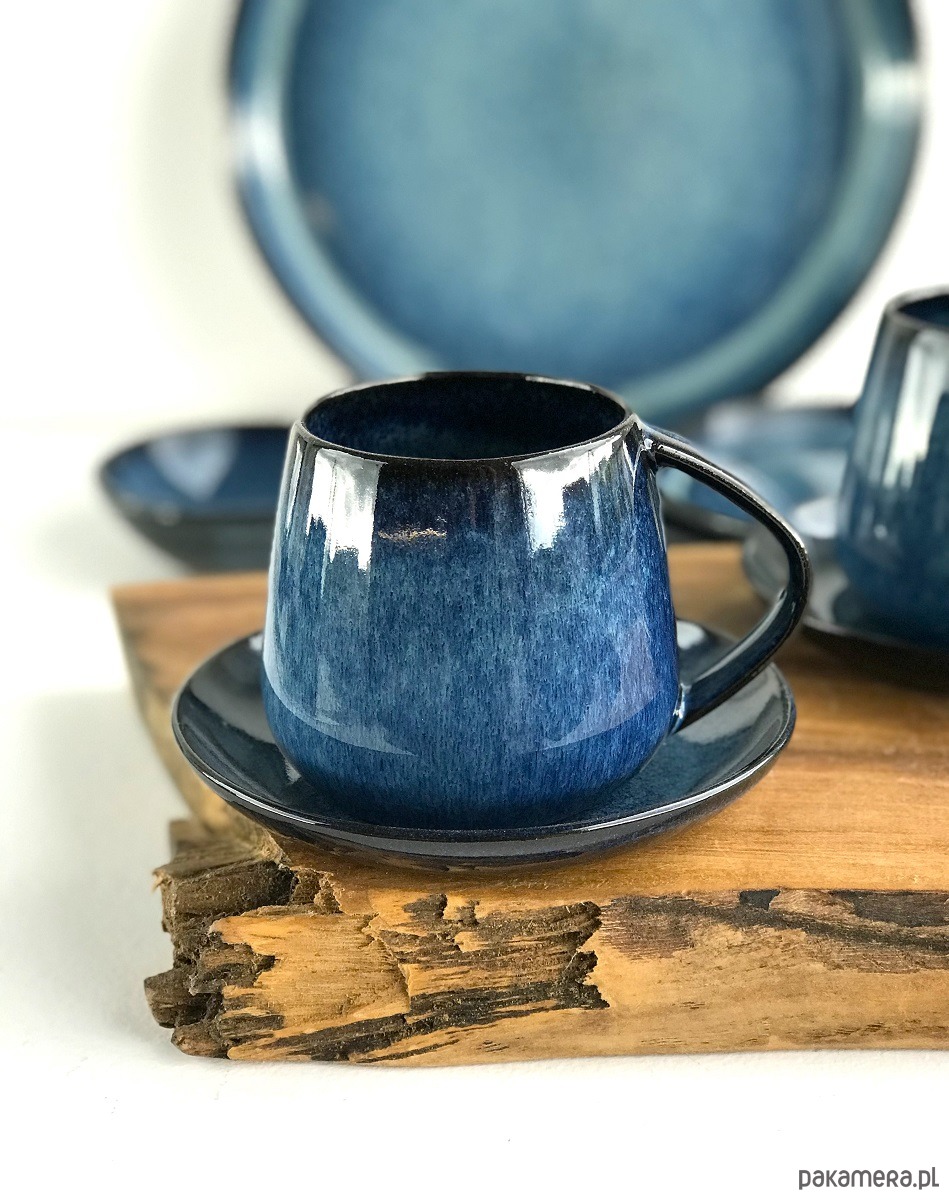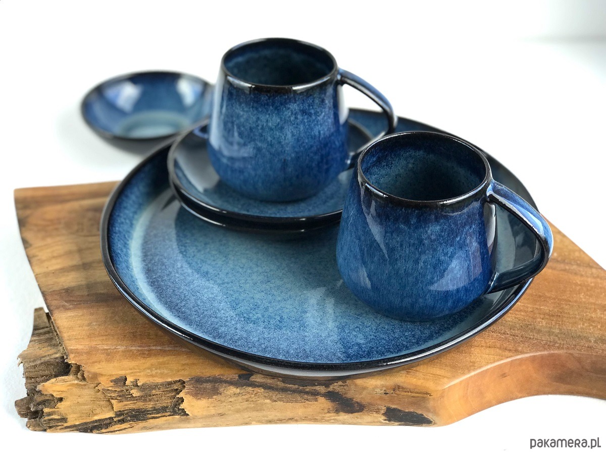 kolory: niebieski, granat, czerń na ciemnoczekoladowej masie ceramicznej
