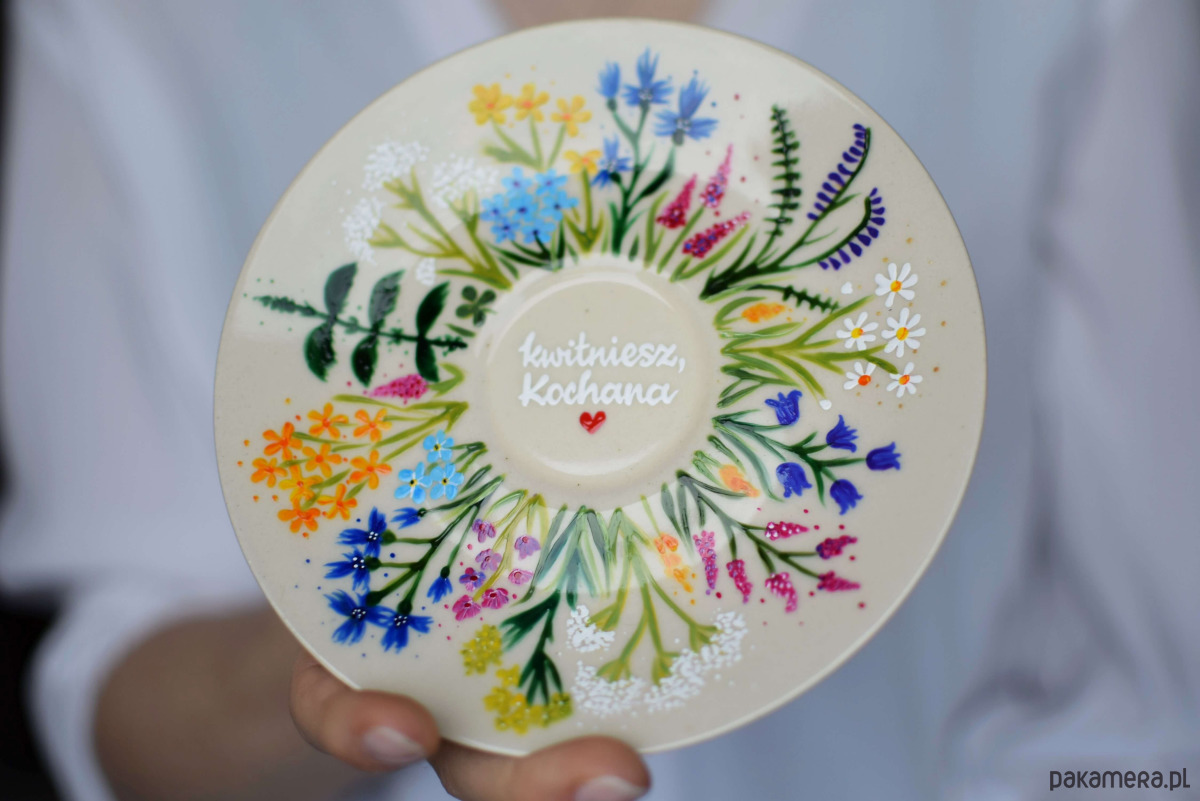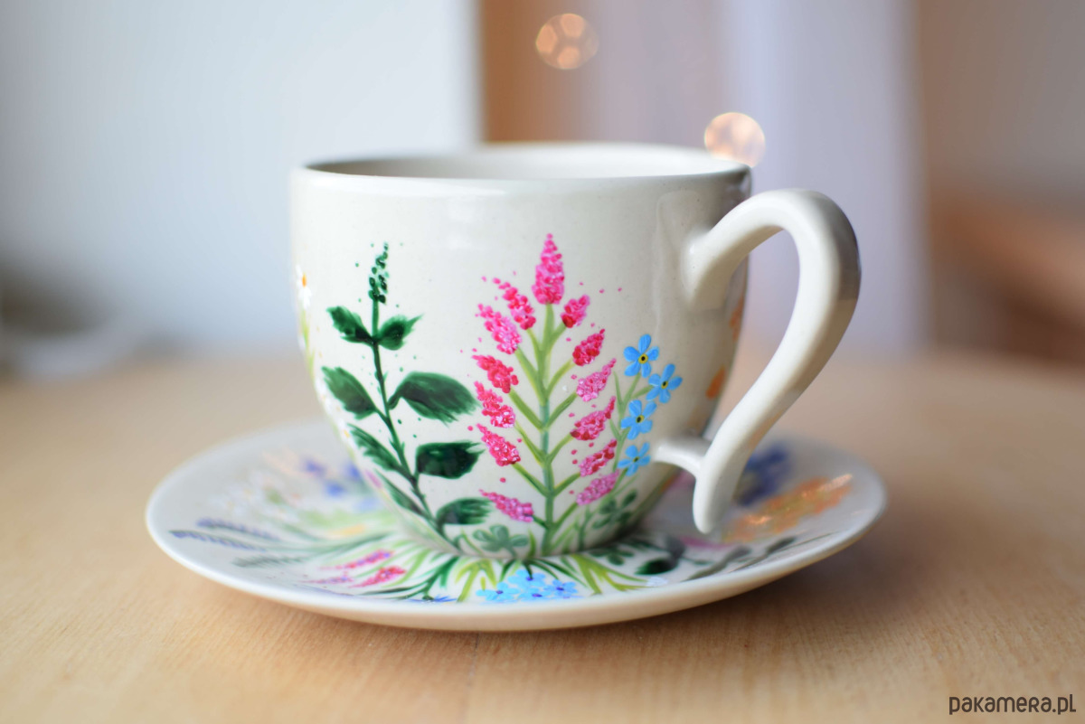 Ceramiczna filiżanka wykonana ręcznie metodą odlewania. Malowana ręcznie.
