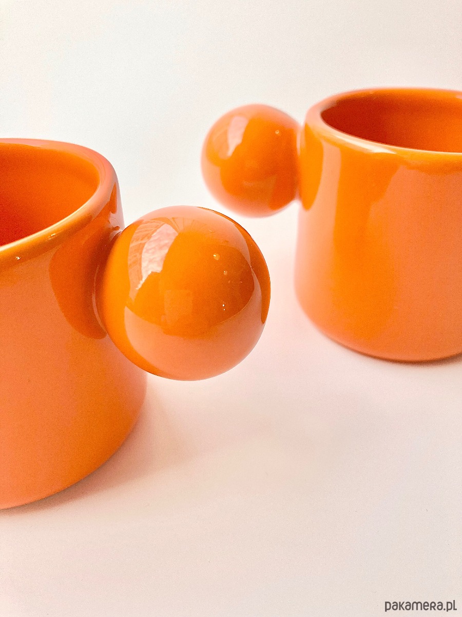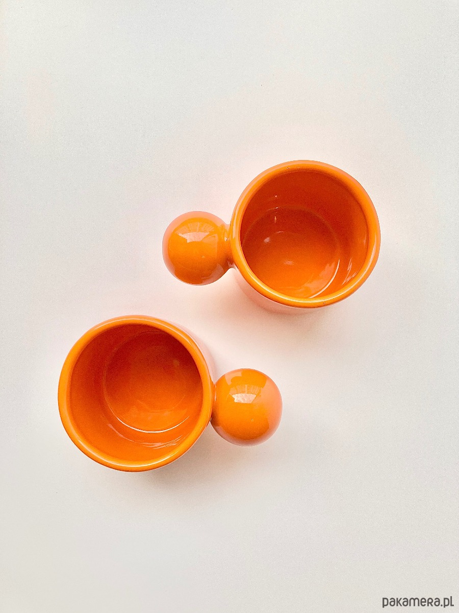 Dodaj odrobinę stylu do swojej kuchni! Ta wyjątkowa filiżanka w intensywnym pomarańczowym kolorze zachwyca nietypowym kulistym uchwytem, który przyciąga wzrok i świetnie leży w dłoni. Idealna do espresso, herbaty lub podawania drobnych napojów w designerskim stylu.