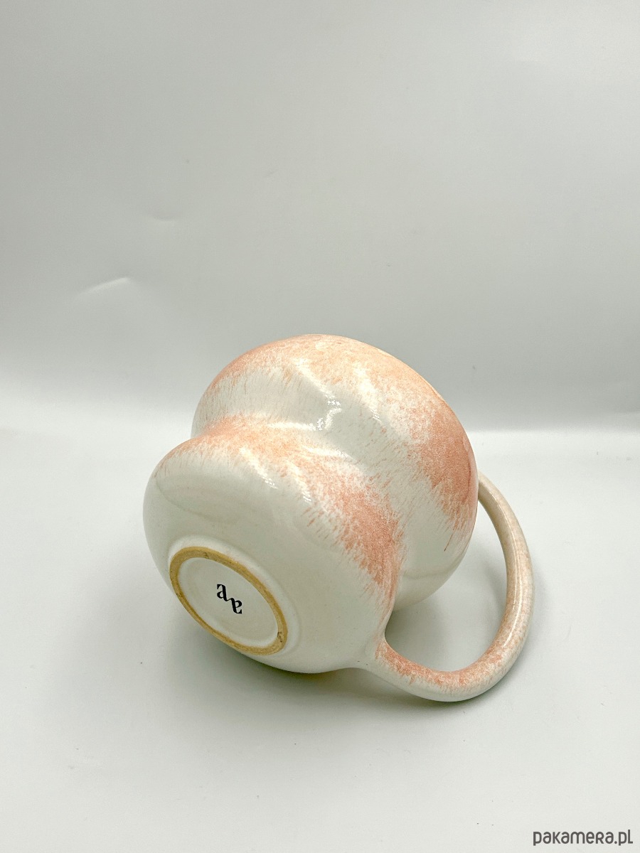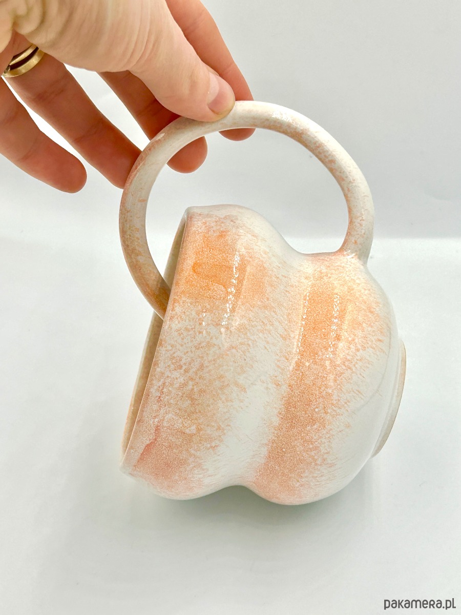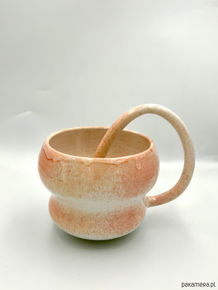 Ręcznie wykonany kubek ceramiczny, wykonany szkliwieniem natryskowym, o pojemności