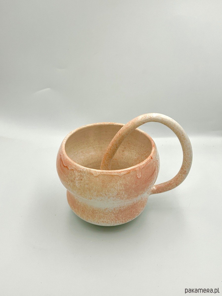 Ok. 300ml. Kubek wykonany na kole garncarskim - mała produkcja. Seria LOOPI urodziła się w mojej głowie i nie byłam pewna czy uda mi się ją zrealizować ręcznie ze względu na wymagające połączenie ucha - no ale UDAŁO SIĘ!