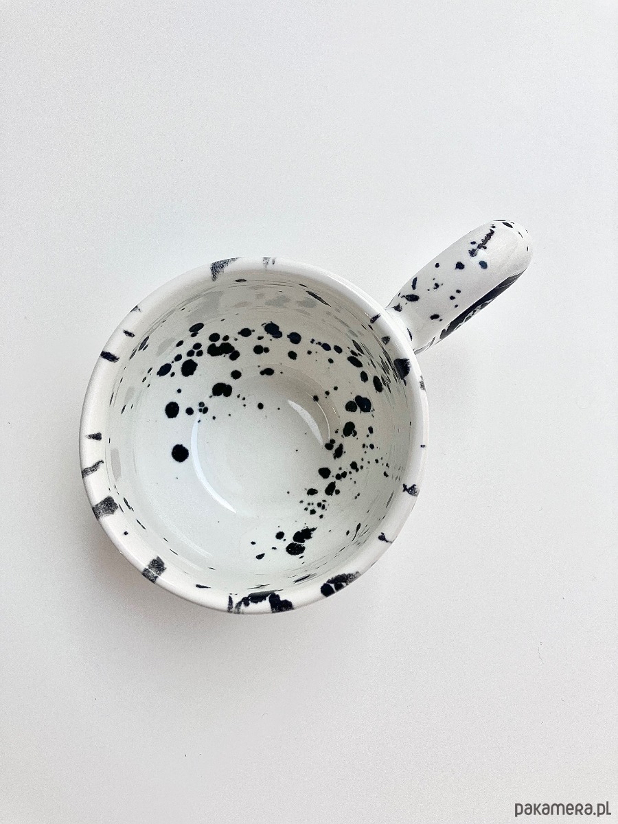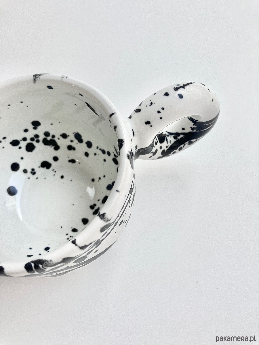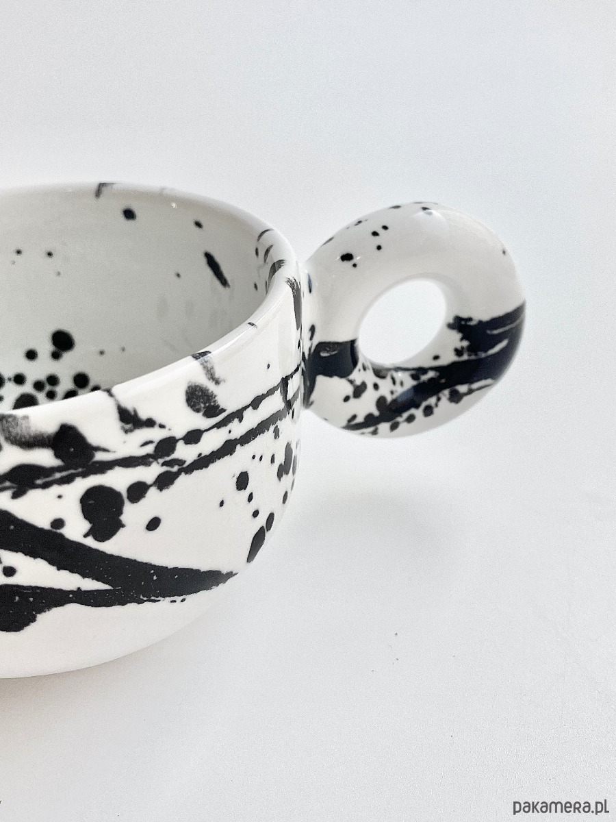 Urocza filiżanka z okrągłym uszkiem. Idealna na małą czarną lub flat white. Nowoczesny design i artystyczny wygląd sprawią, że szybko stanie się twoim ulubieńcem 🖤🤍