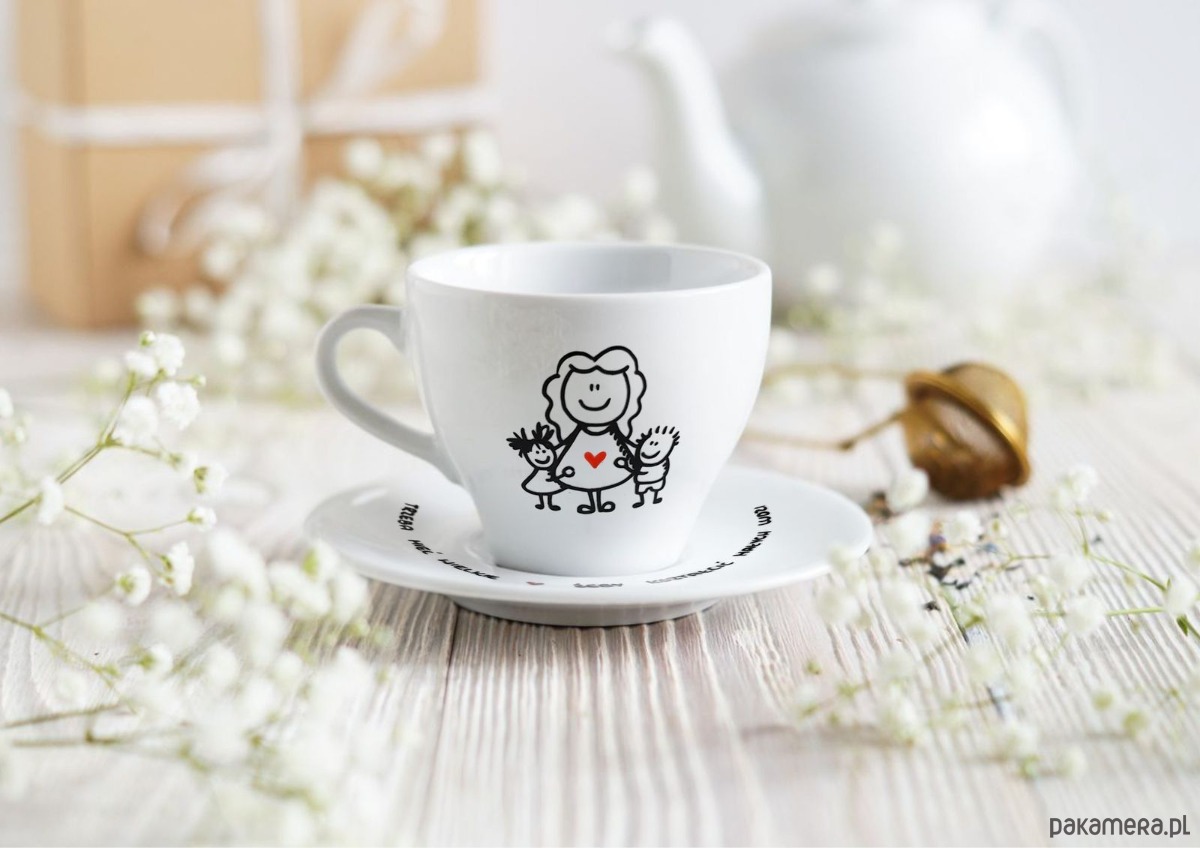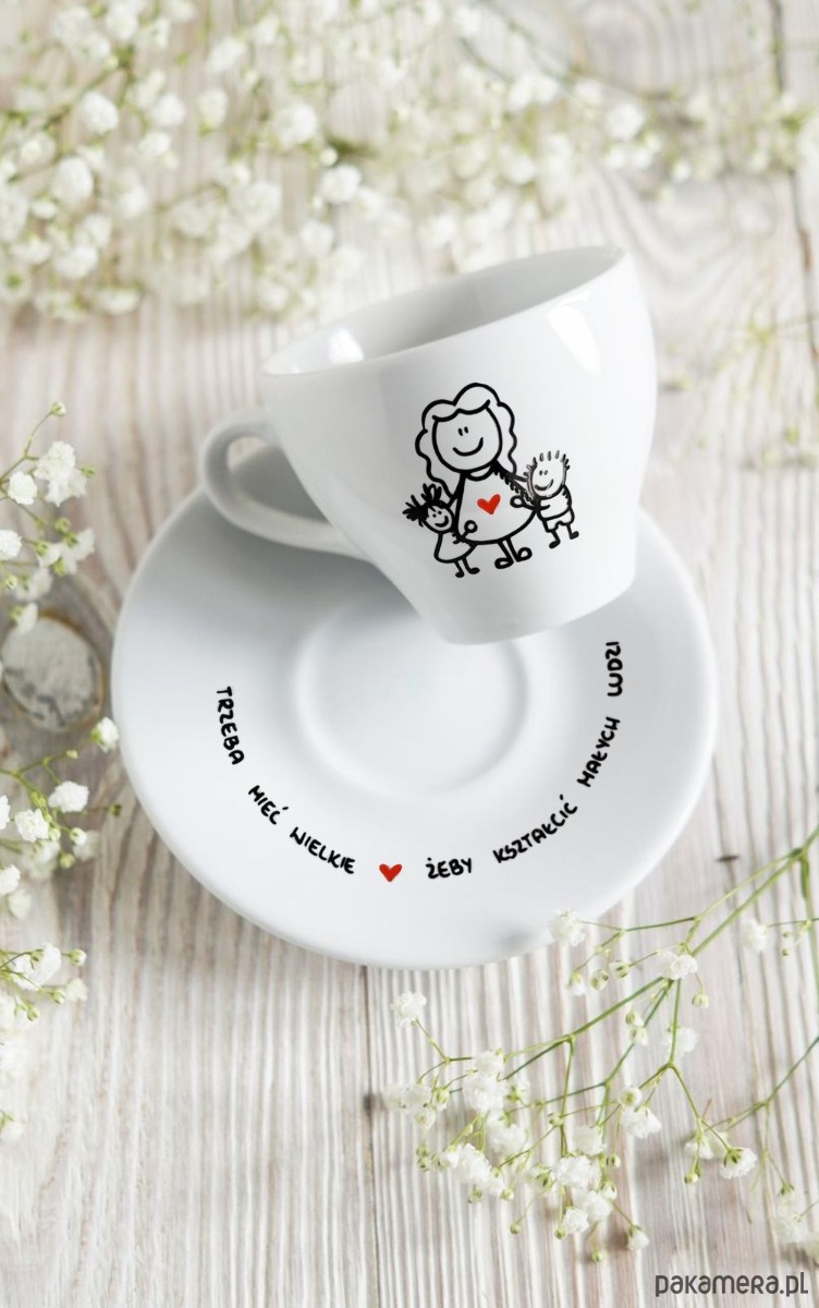 Dodatkowa personalizacja : Na ściance filiżanki, po przeciwnej stronie rysunku, możemy dopisać dowolny krótki tekst (do 6 słów) - jeśli chcesz skorzystać z tej opcji dodaj do koszyka produkt PERSONALIZACJA KUBKA dostępny w naszym sklepie.