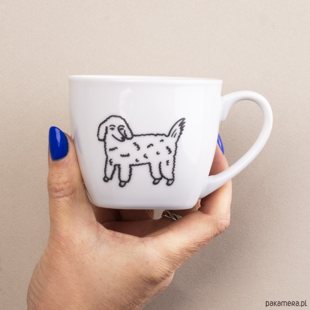 Filiżanka zdobiona ręcznie ilustracją pudla. Stworzona w duchu zero waste i upcykling - pochodzi z drugiej ręki. Kiedyś przez kogoś używana, później zapomniana, teraz ma szansę na nowy dom! Kupując przedmioty od Empe dbasz o naszą planetę ♥