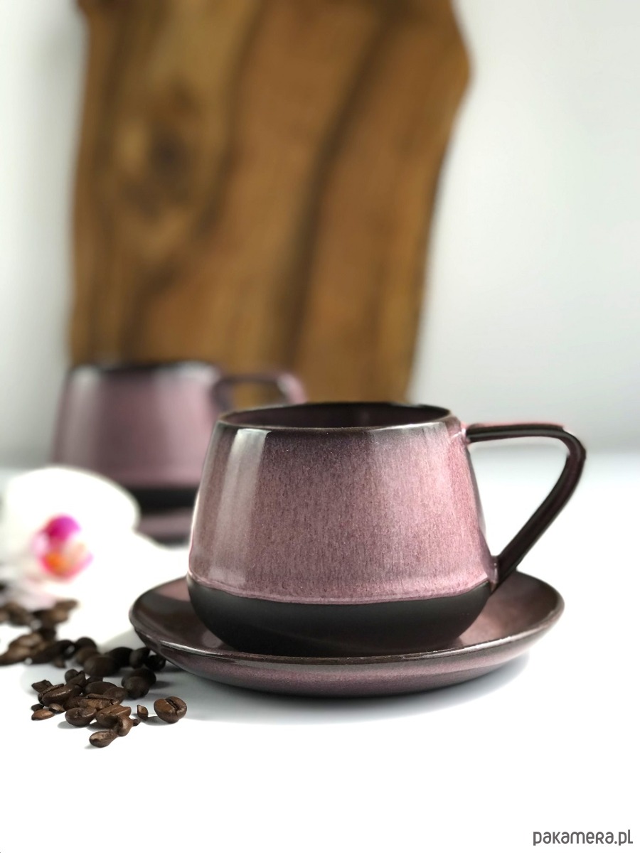 Filiżanka ceramiczna ze spodeczkiem 250 ml w kolorze ciemno pudrowego różu