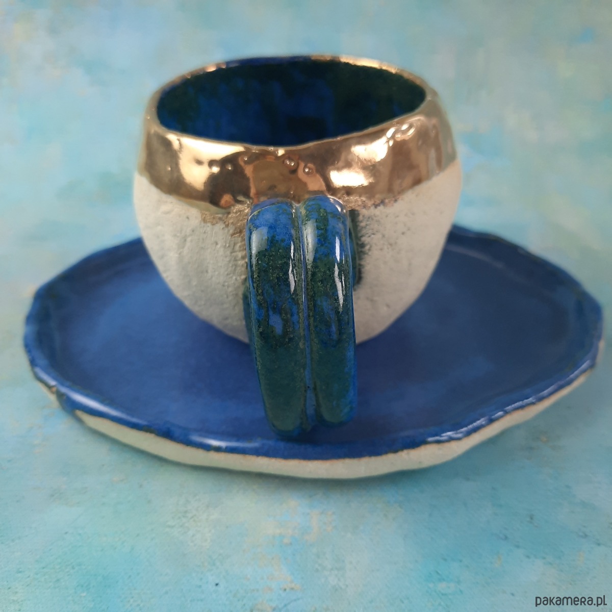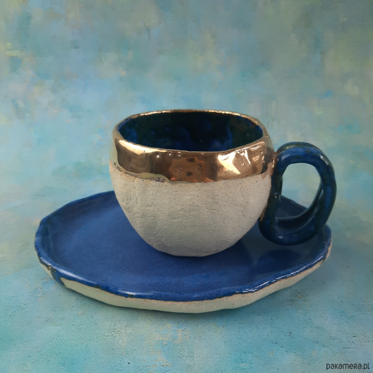Filiżanka ze spodkiem – granat i złoto | 100% handmade