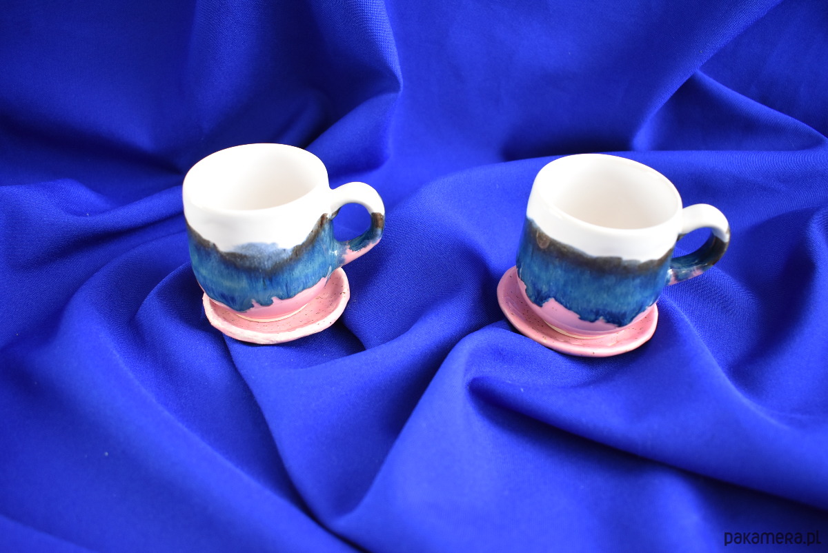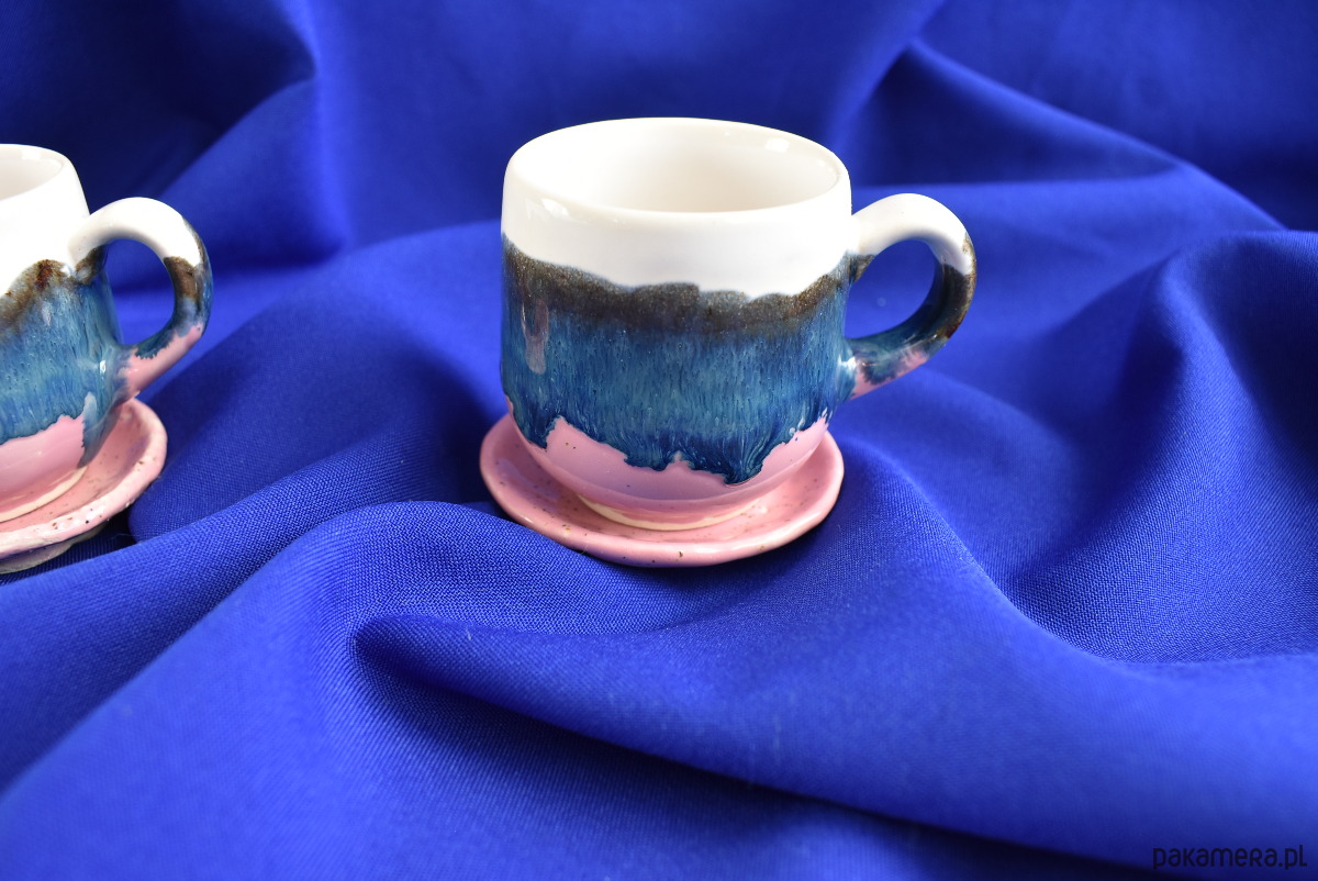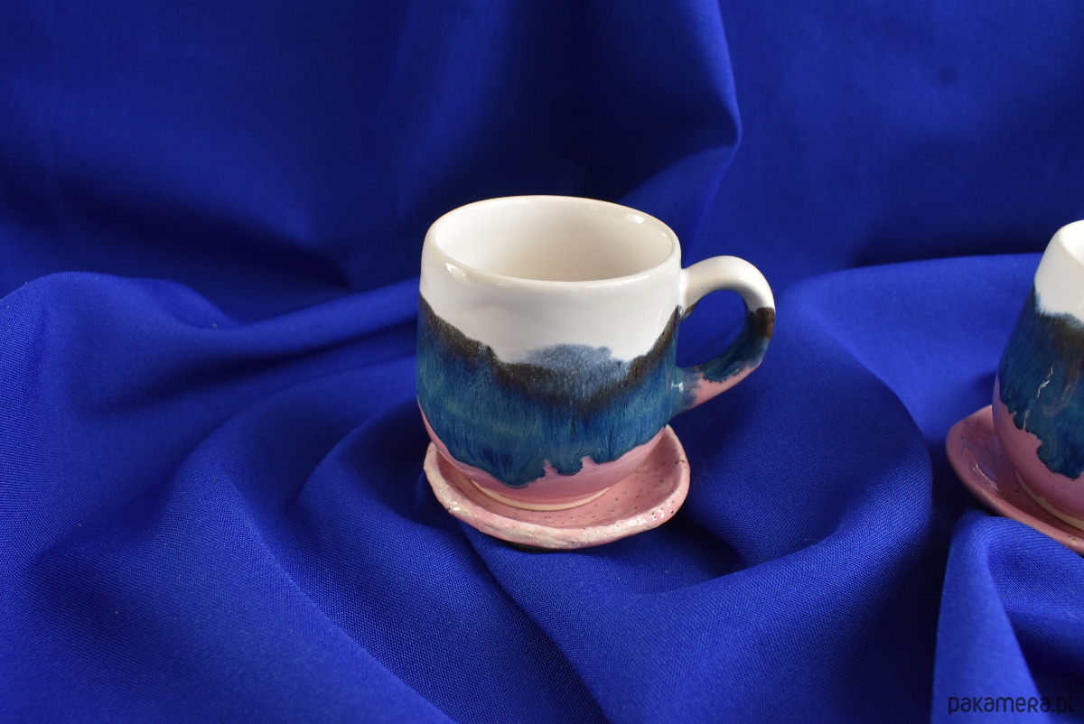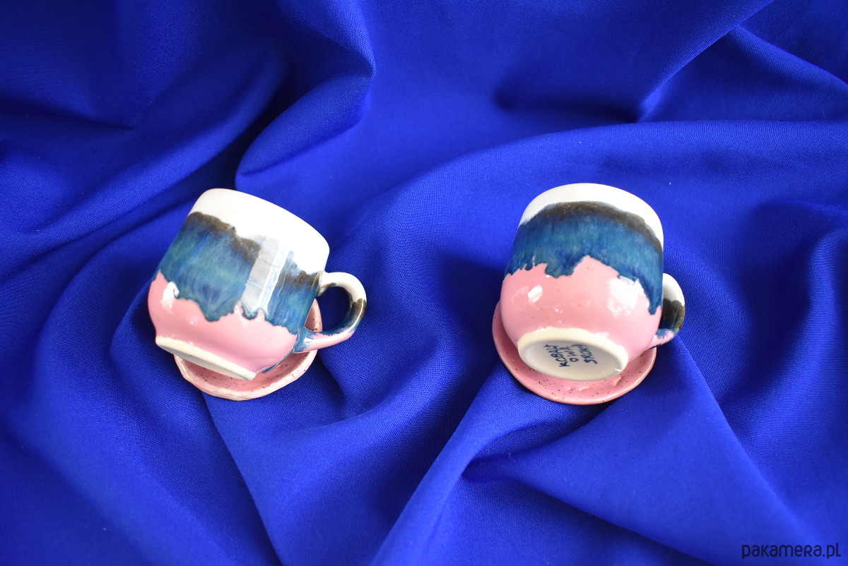Te wyjątkowe filiżanki ceramiczne z podstawkami to idealne towarzyszki codziennych chwil z kawą lub herbatą. Zestaw składa się z dwóch filiżanek utrzymanych w harmonijnym połączeniu koloru morskiego, różowego i bieli – delikatnych, a jednocześnie przyciągających wzrok.