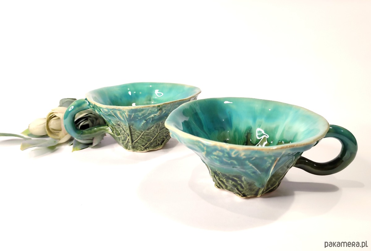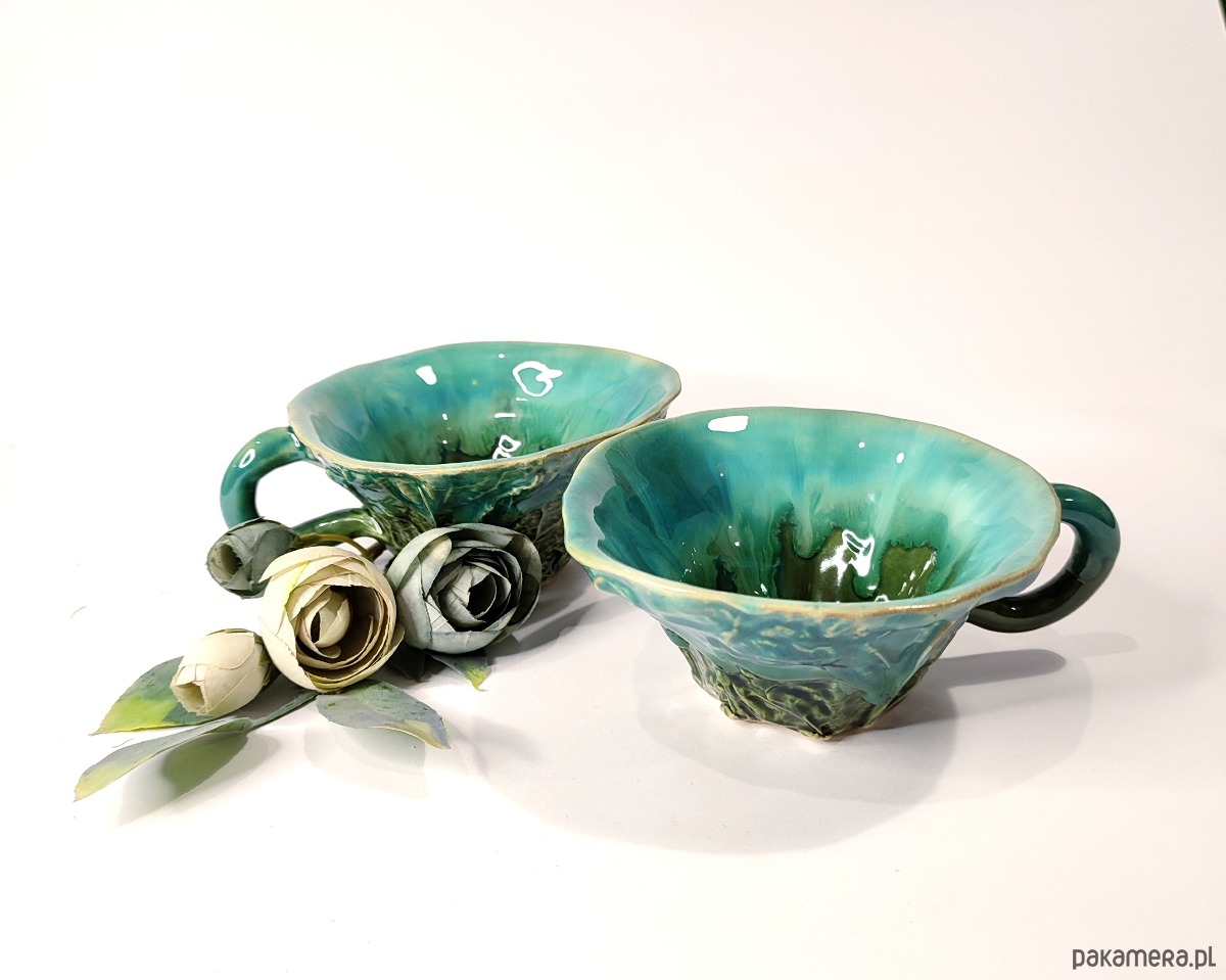 Dwie filiżanki na kawę tworzone z pasji do ceramiki. Wszystko wykonane ręcznie z dbałością o szczegóły. Szkliwa oryginalne własnej receptury ( nikt nie powtórzy tej filiżanki :-)
