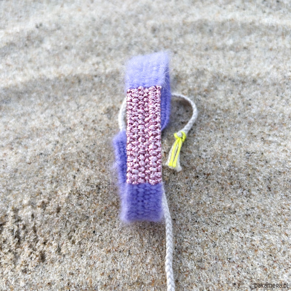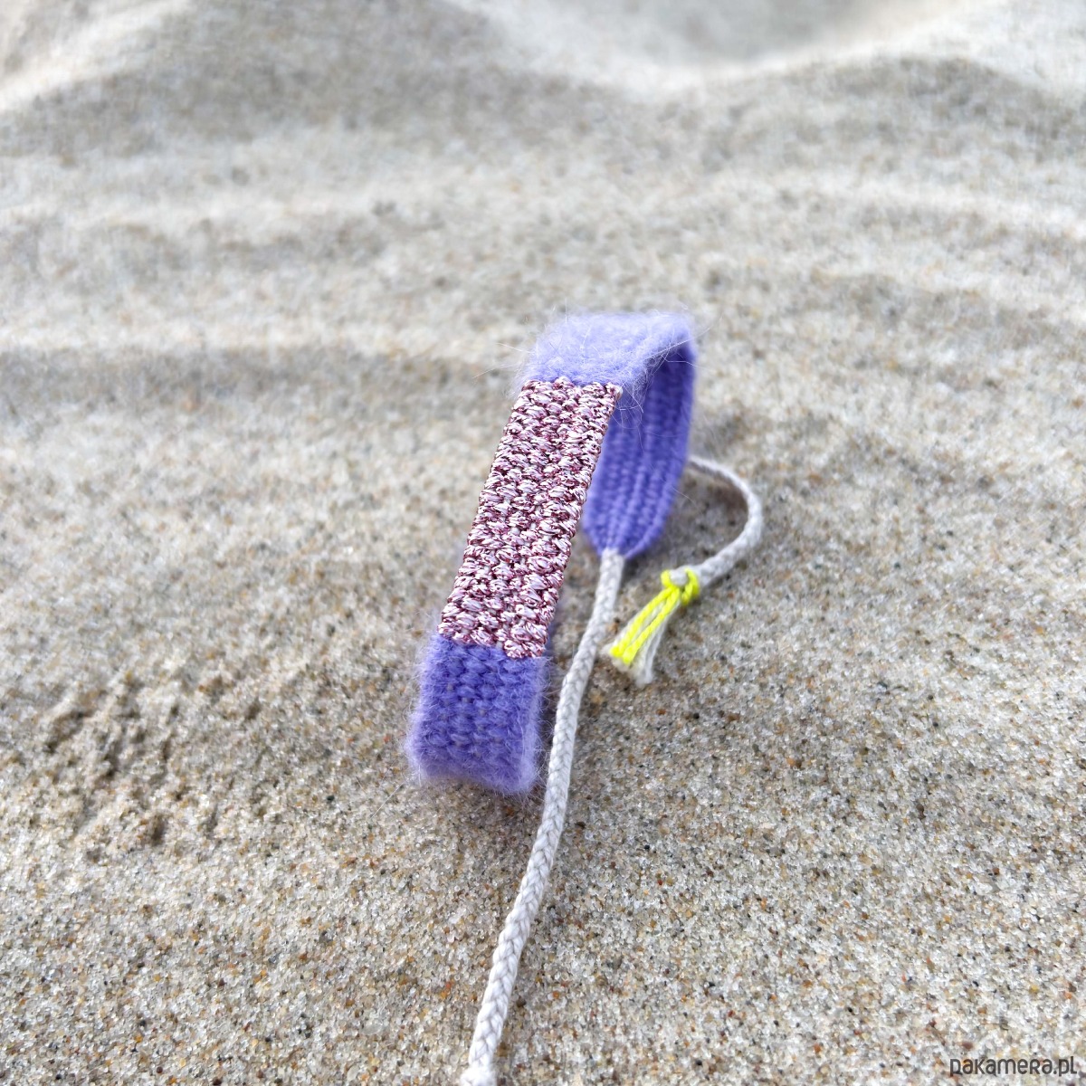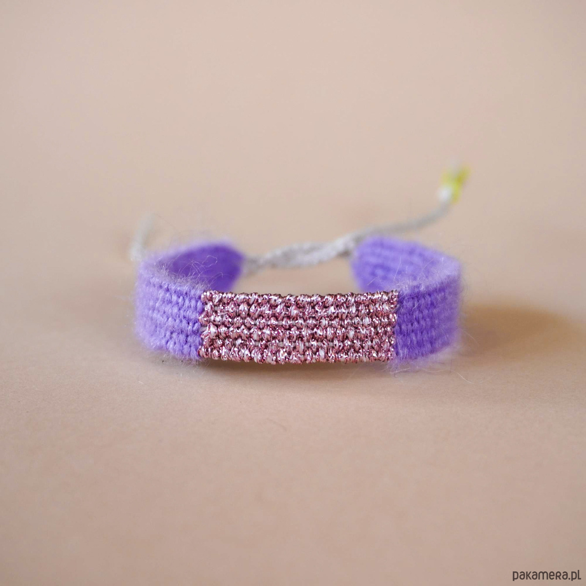 Fioletowa bransoletka tkana handmade, na sznurku